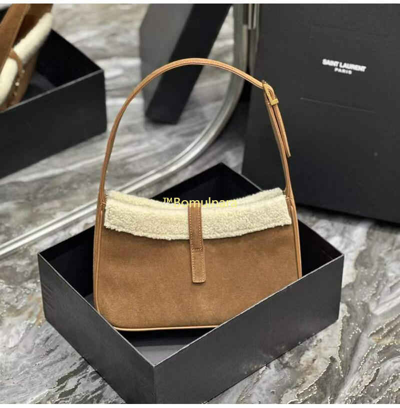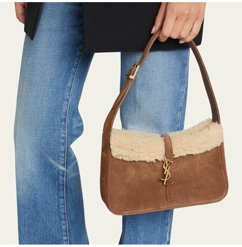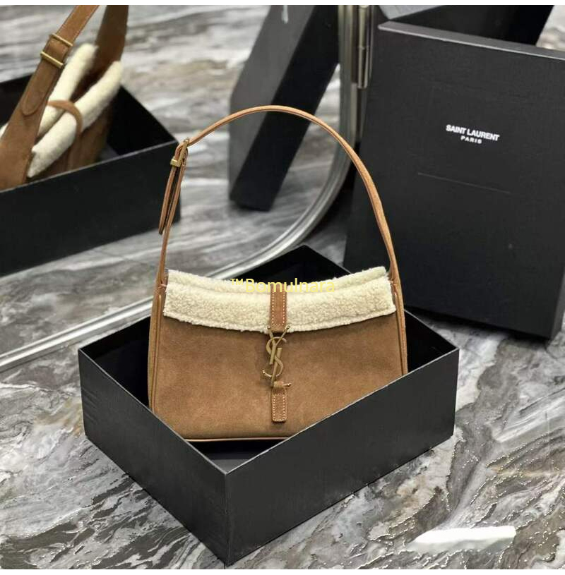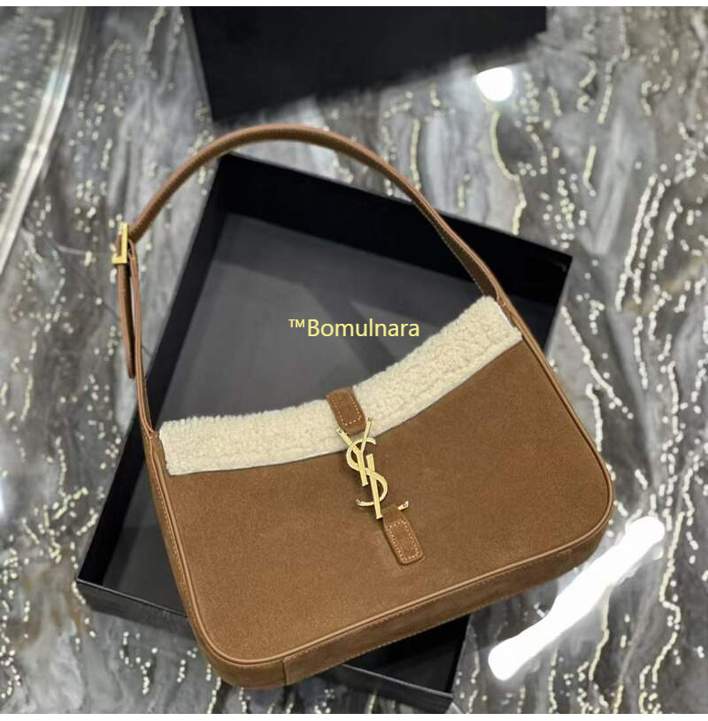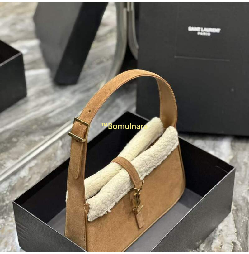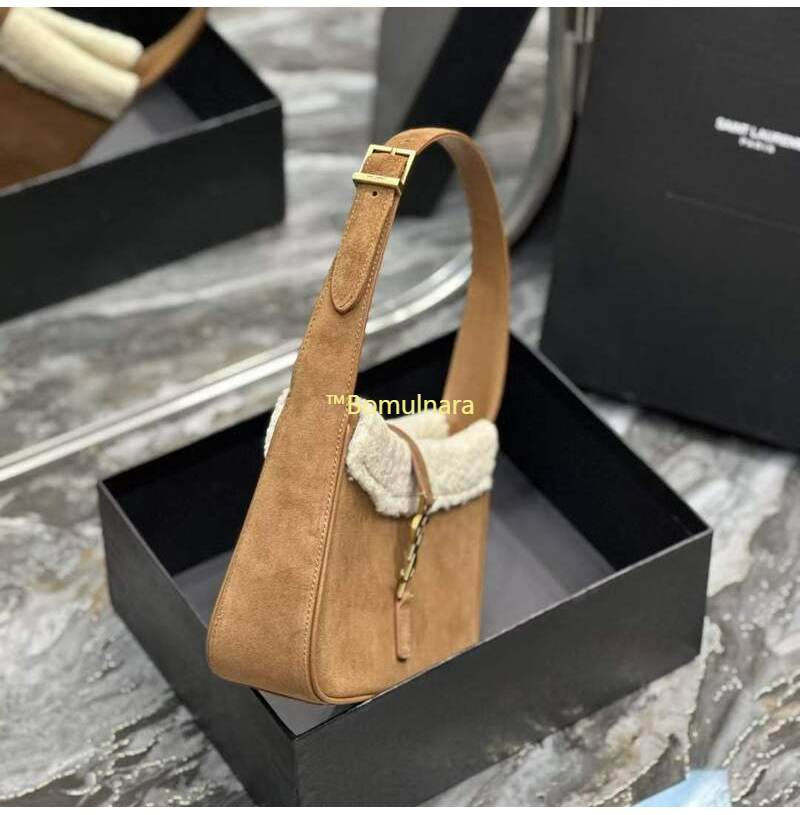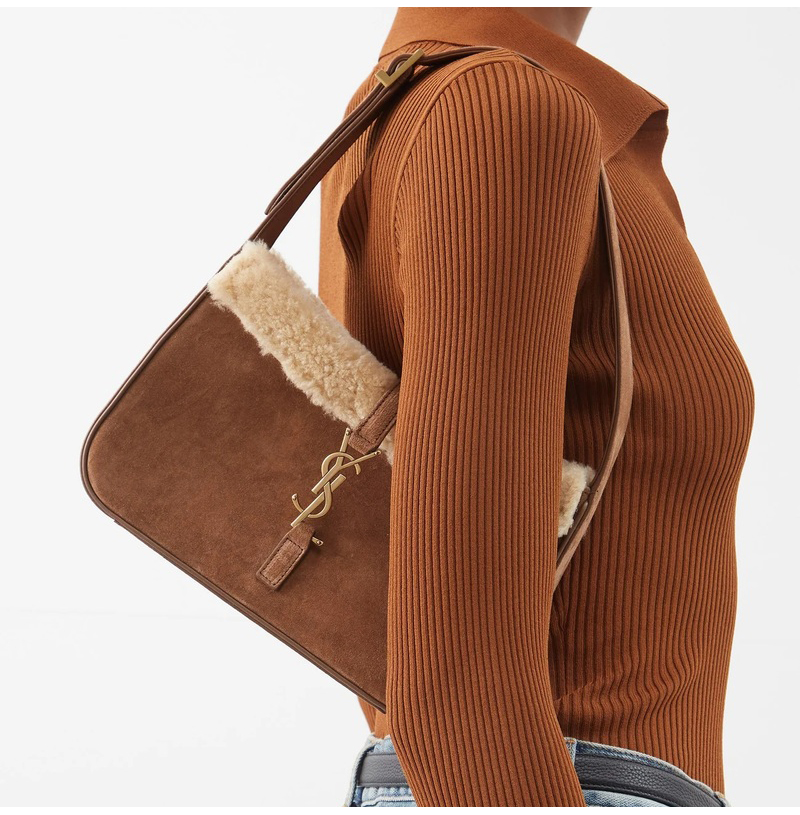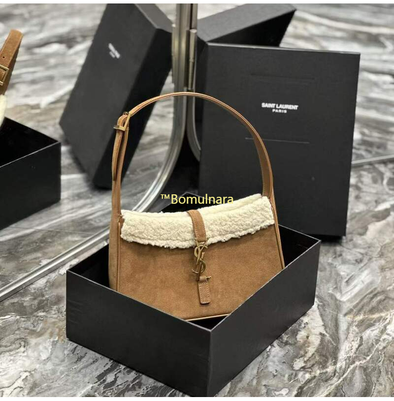 [스페셜오더]SAINT LAURENT-657228 생 로랑 다크 브라운 스웨이드 시어링 LE 5 7 스몰 호보백