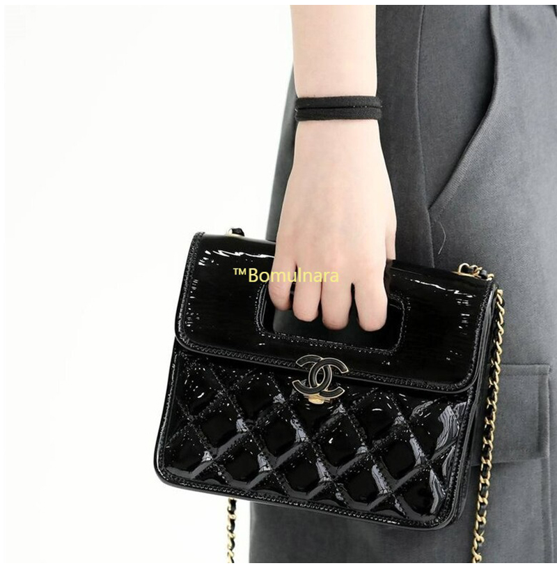 CHANEL-AS4025 샤넬 블랙 페이턴트 탑 핸들