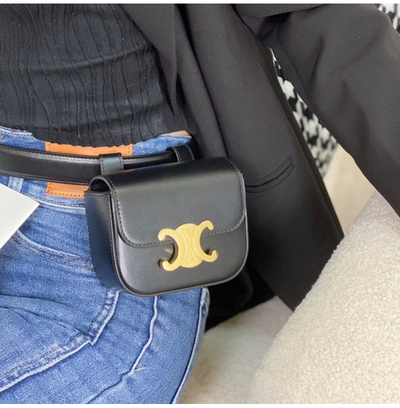 [스페셜오더]CELINE-45BCN2 셀린느 블랙 샤이니 카프스킨 트리옹프 벨트백