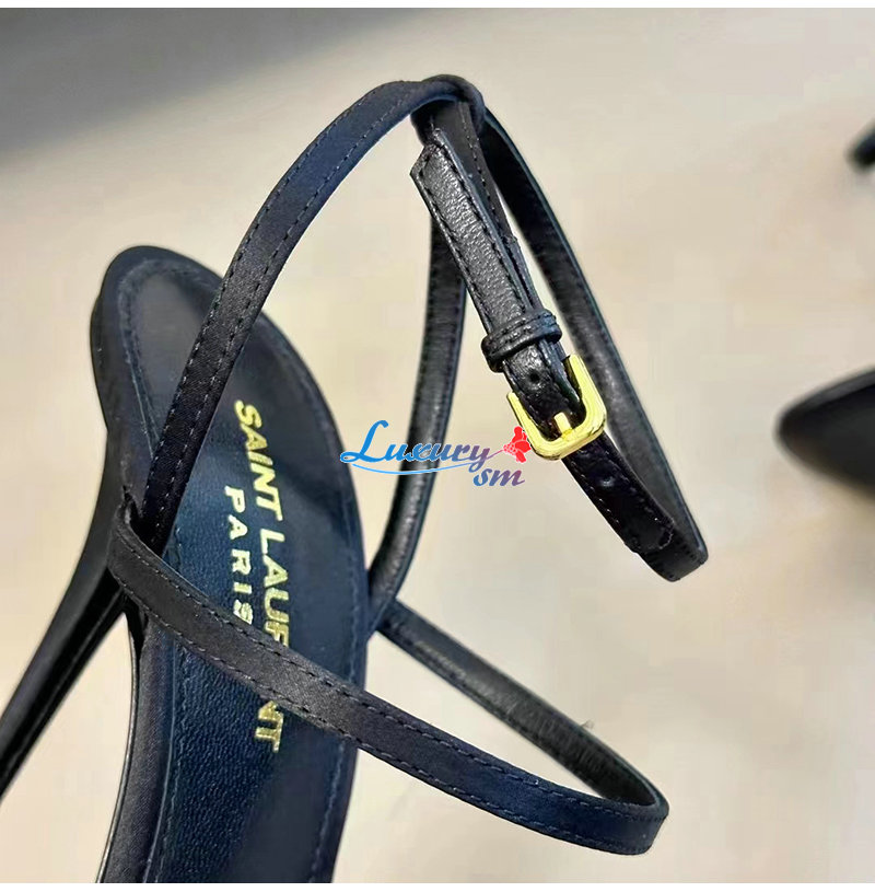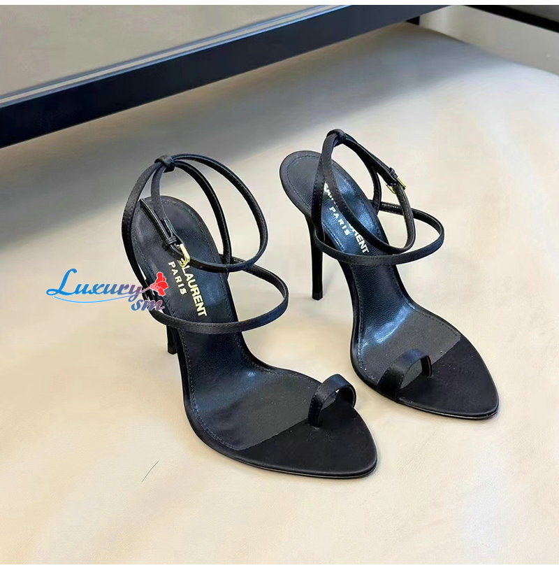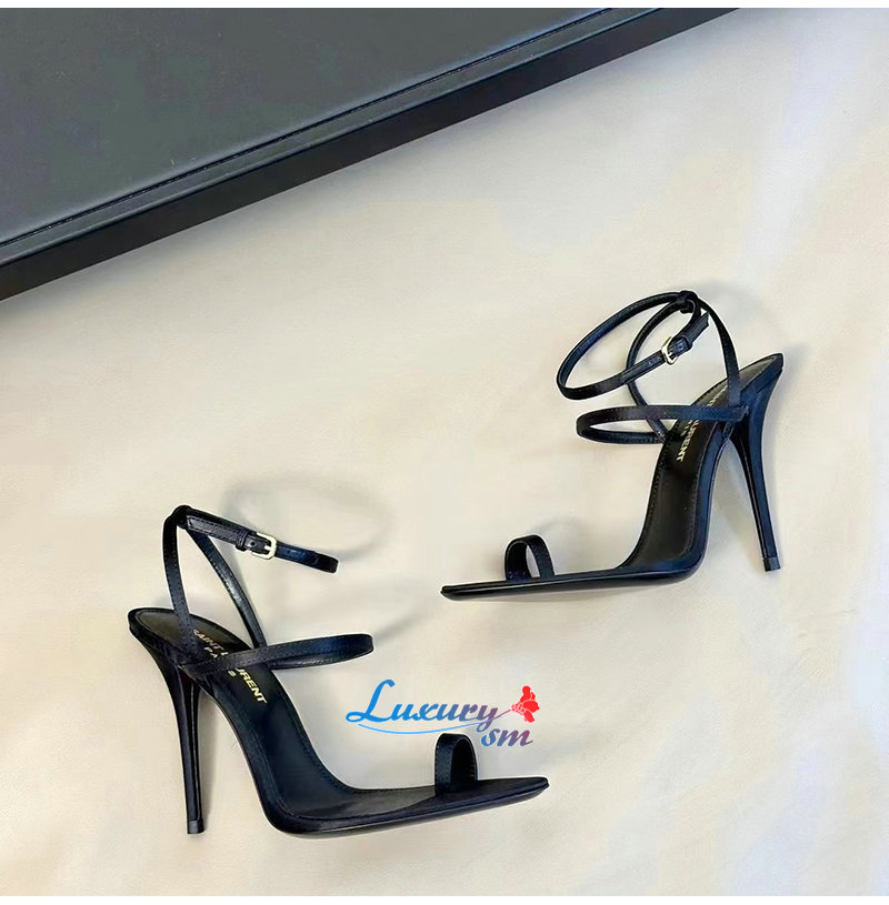 SAINT LAURENT-743996 생 로랑 블랙 크레이프 새틴 DIVE 샌들