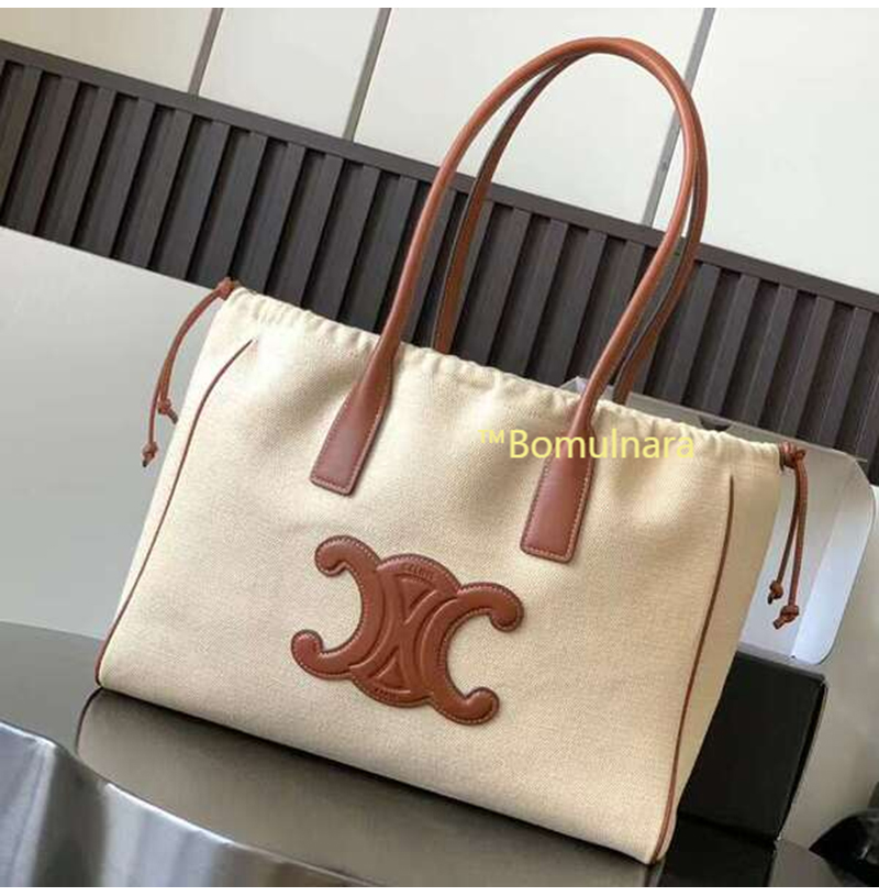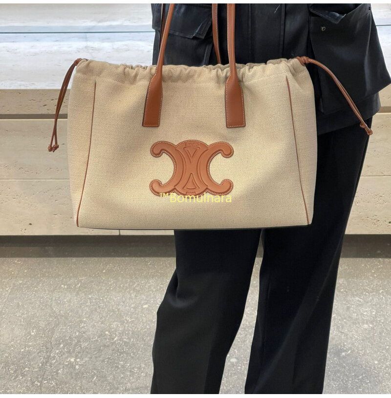 [스페셜오더]CELINE-199972 셀린느 내추럴/탠 퀴르 트리옹프 드로우스트링 텍스타일 라지 카바스 숄더백
