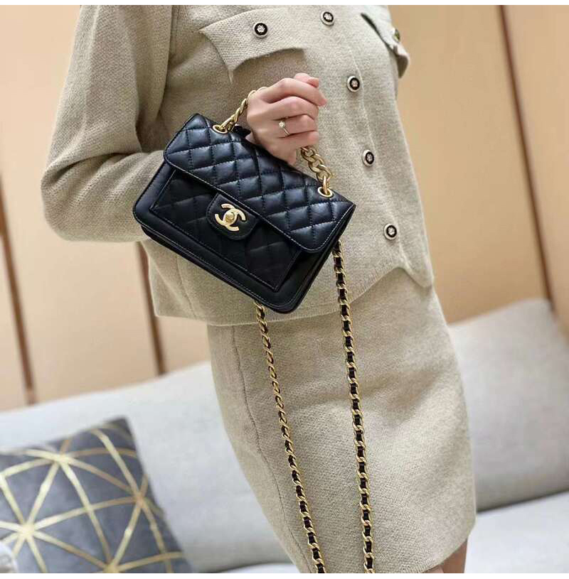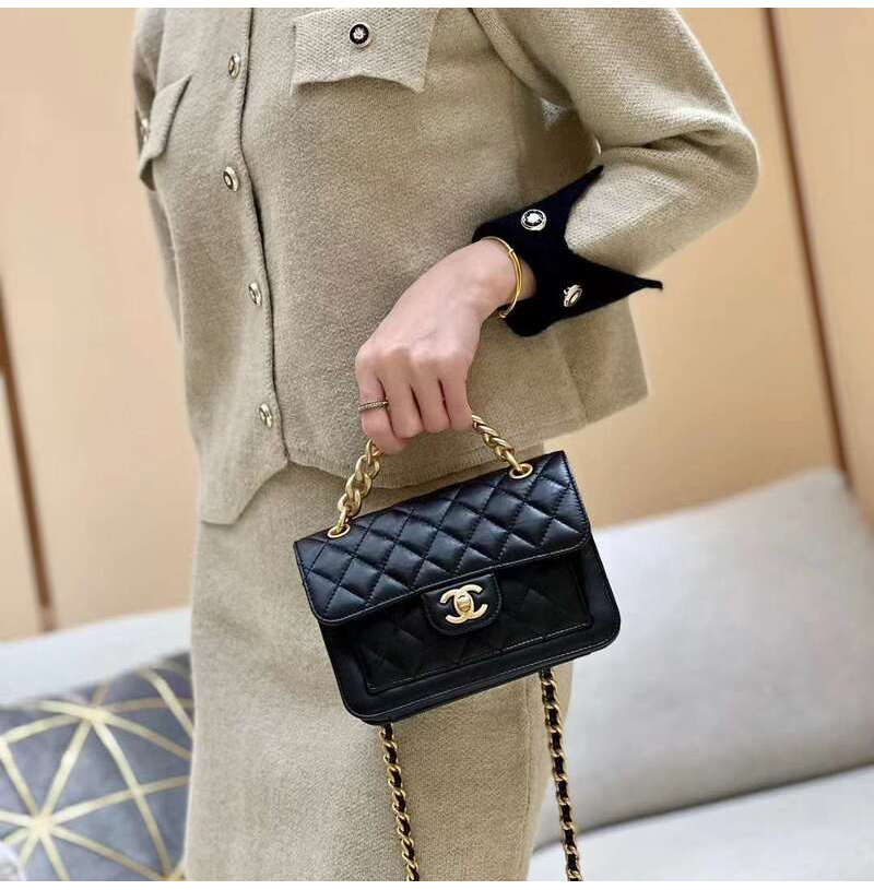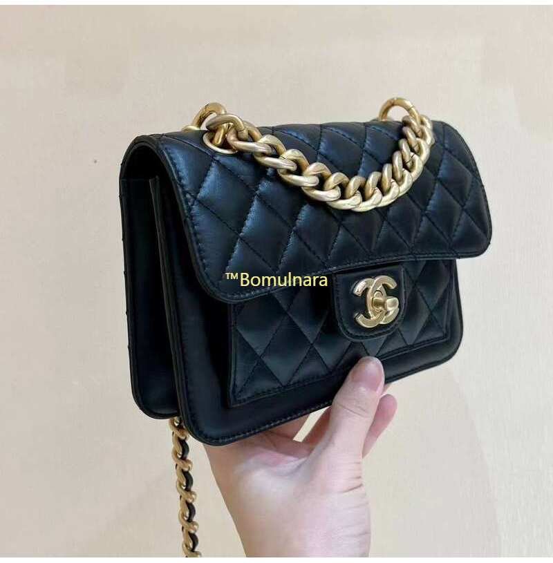 [스페셜오더]CHANEL-AS4035 샤넬 23SS 블랙 에이지드 카프스킨 탑핸들 체인 플랩백