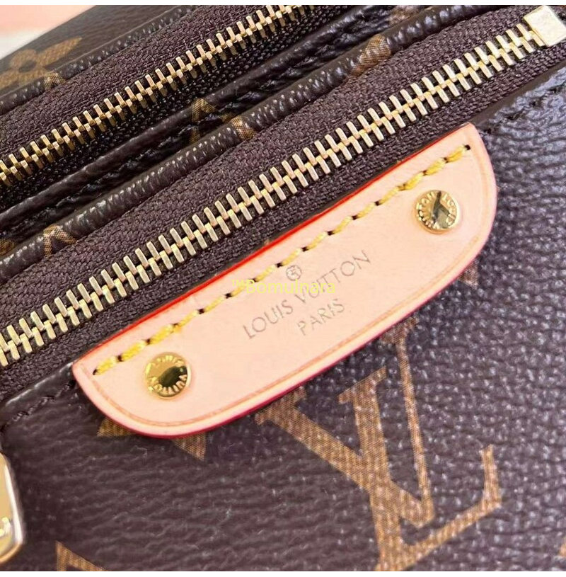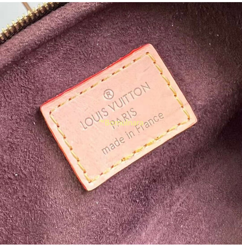 지퍼가 달린 메인 수납 공간과 루이비통 가죽 태그