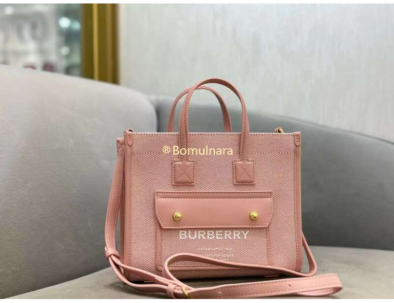 [스페셜오더]BURBERRY-80633081 버버리 브라이트 레드/더스키 핑크 프레야 미니 토트 백