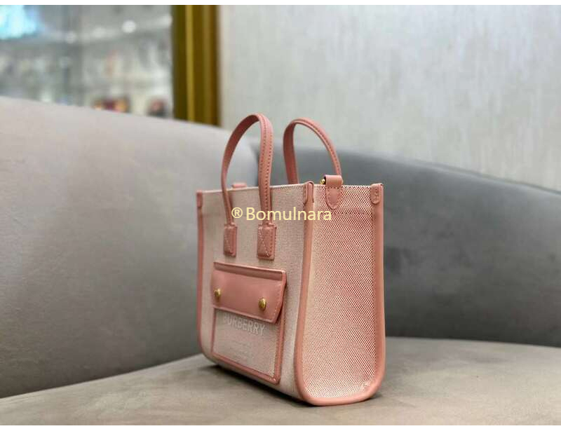 [스페셜오더]BURBERRY-80633111 버버리 브라이트 레드/더스키 핑크 미니 포켓 탑 핸들백