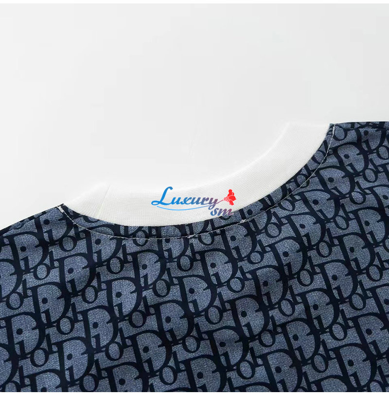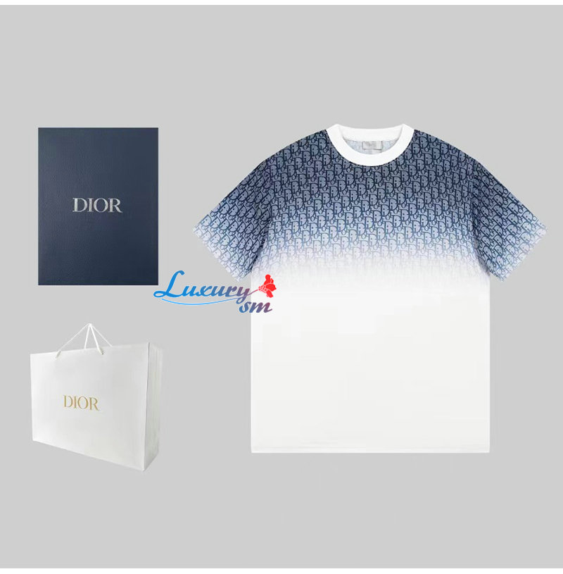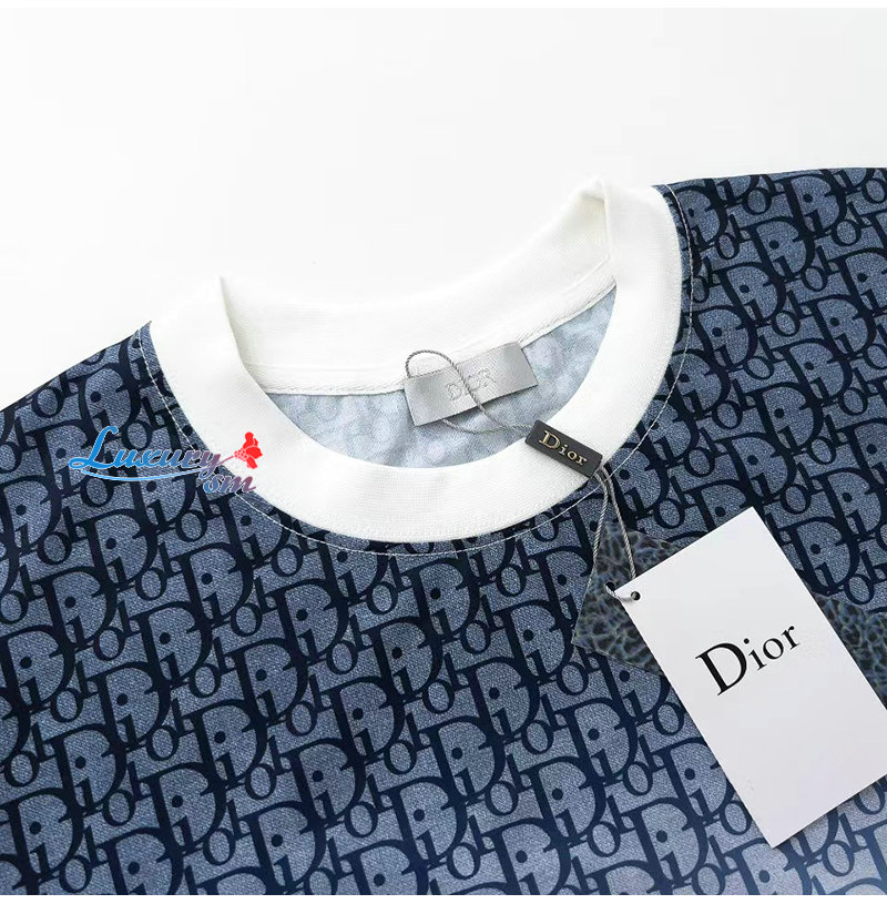 DIOR-05281 디올 화이트/블루 DIOR OBLIQUE 티셔츠 남여공용