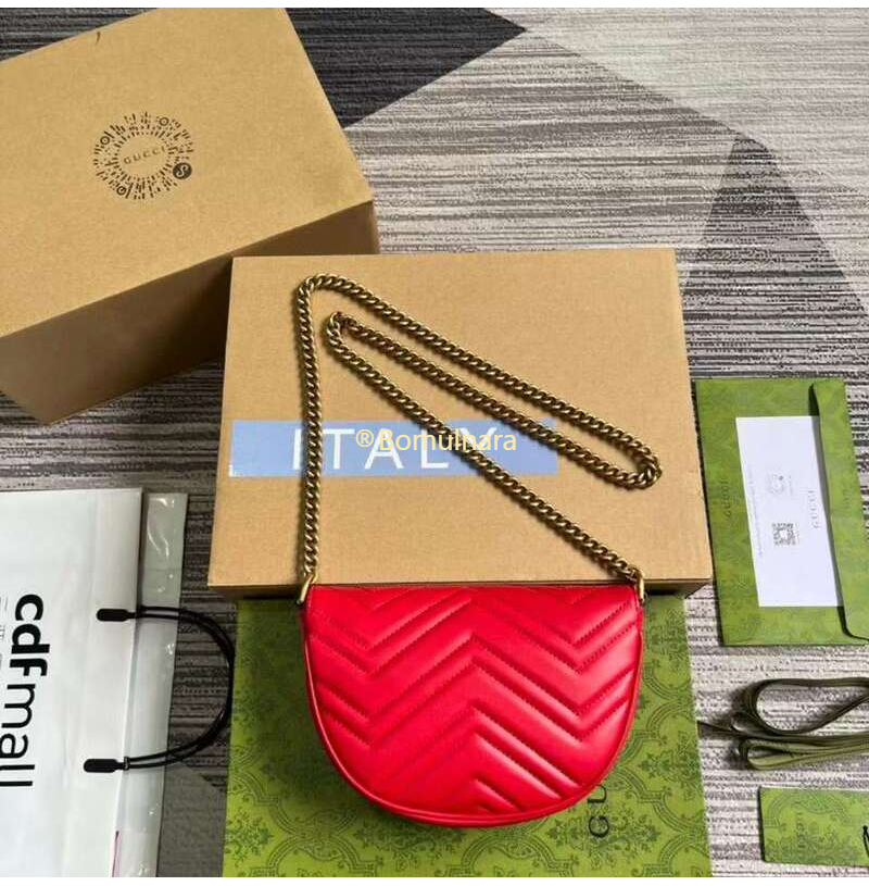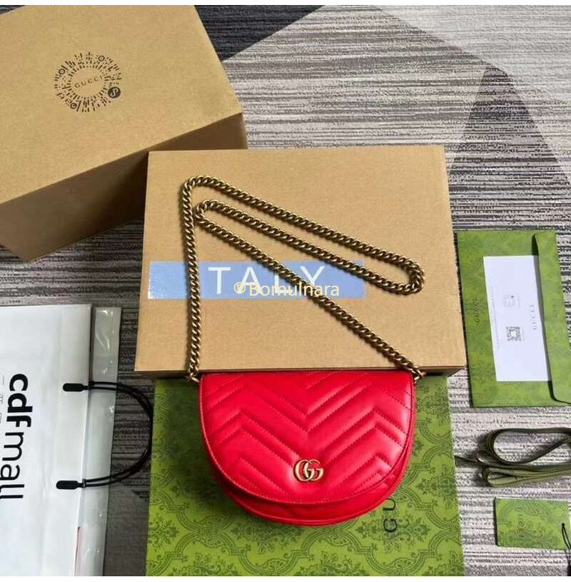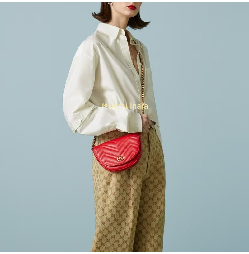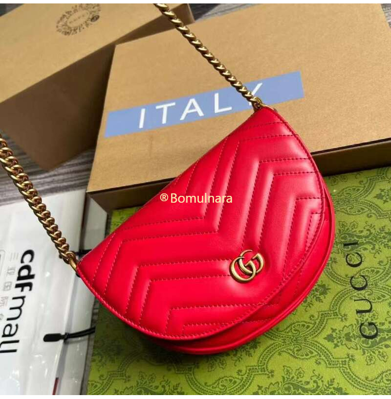 [스페셜오더]GUCCI-746431 6832 구찌 레드 GG 마몽 마틀라세 하프문 체인 미니백