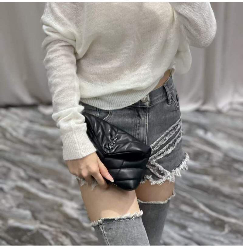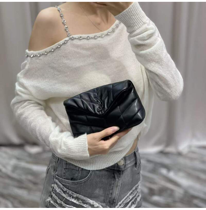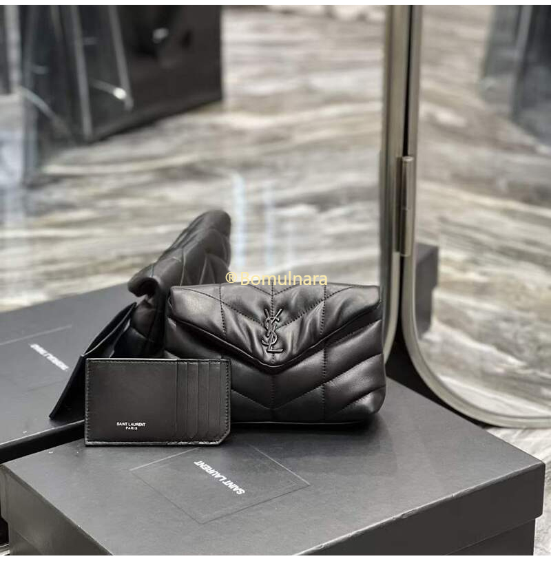 [스페셜오더]SAINT LAURENT-650880 생 로랑 블랙 램스킨 퀼티드 실버 퍼퍼 스몰 파우치