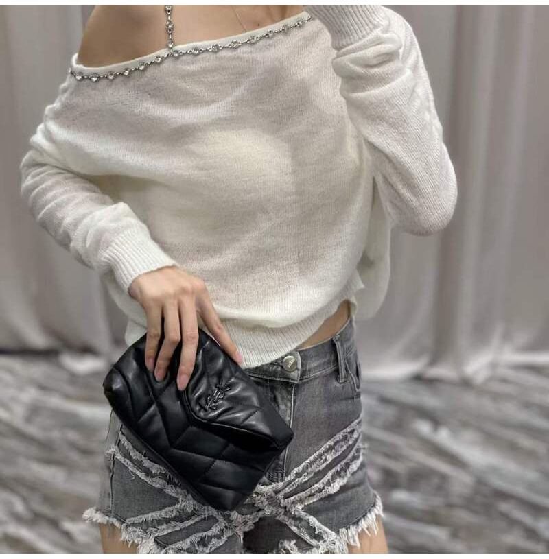퀼티드 블랙 메탈 퍼퍼 스몰 파우치