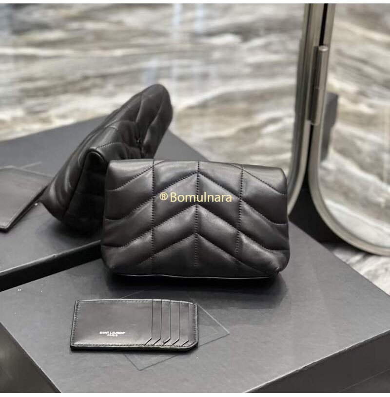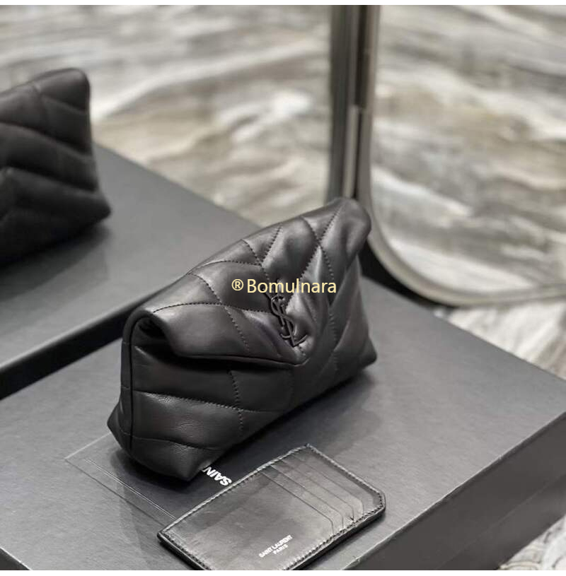 [스페셜오더]SAINT LAURENT-650880 생 로랑 블랙 램스킨 퀼티드 블랙 메탈 퍼퍼 스몰 파우치