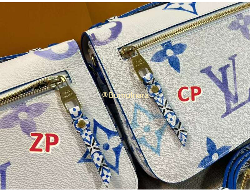 블루 파스텔 플라워 모노그램 캔버스 / 카우하이드 가죽 트리밍