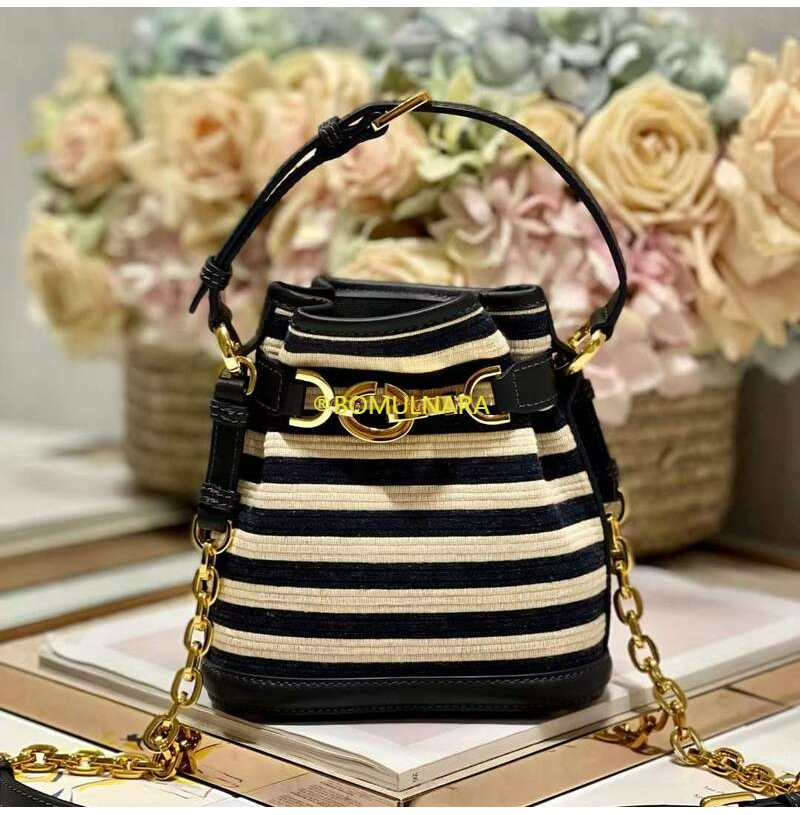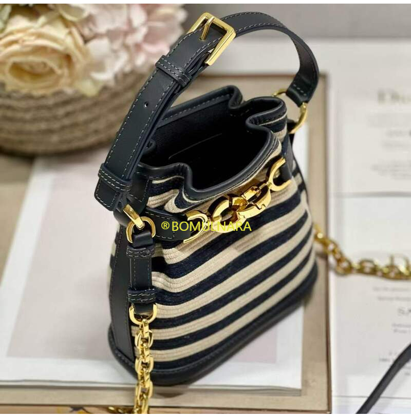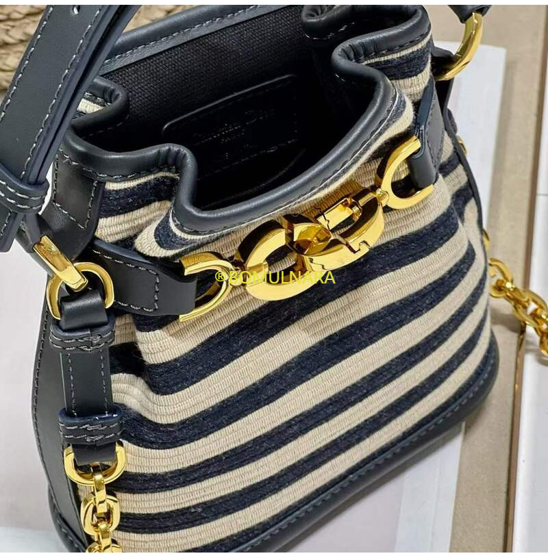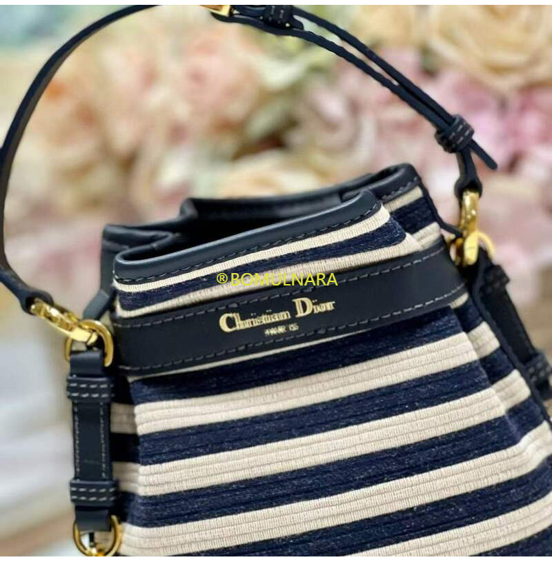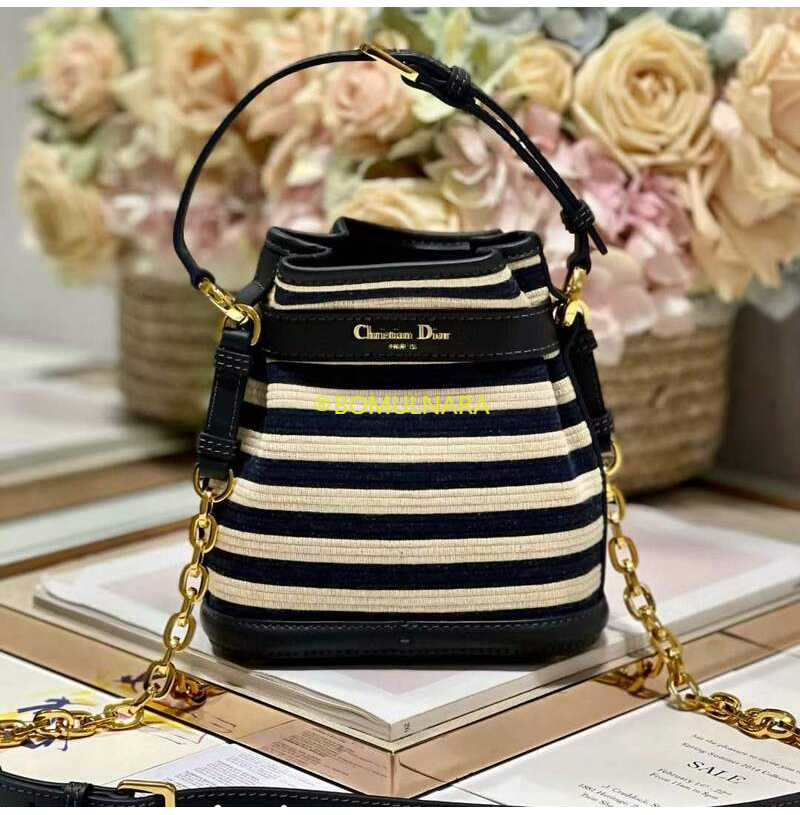 [스페셜오더]DIOR-M2272 디올 내추럴/데님 블루 마리니에르 라피아 C EST DIOR 스몰 버킷 백