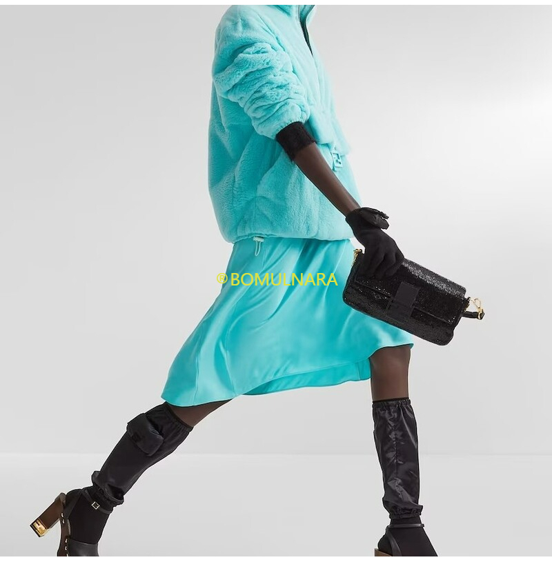 [스페셜오더]FENDI-8BR600 펜디 라이트 블루 FF 모티프 양가죽 미디엄 바게트백