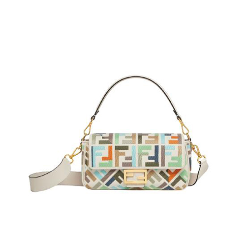 [스페셜오더]FENDI-8BR600 펜디 멀티컬러 FF 글레이즈 패브릭 인레이 미디엄 바게트 백