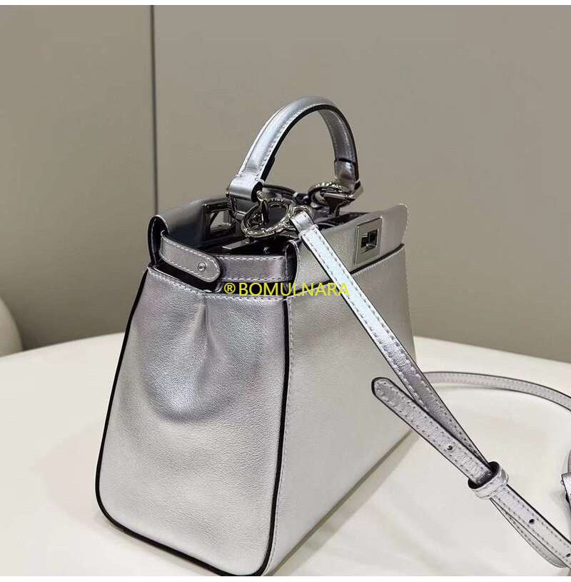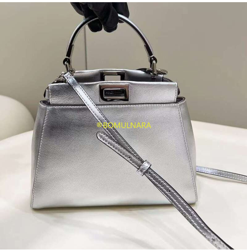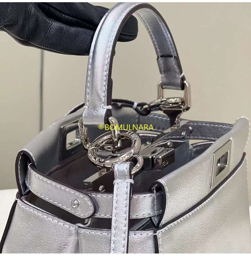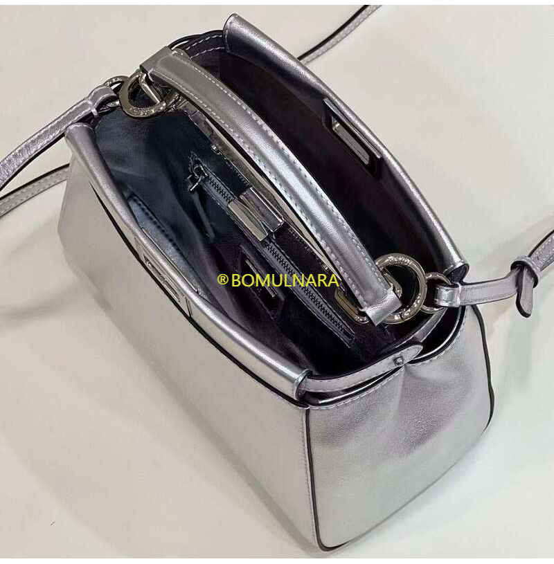 [스페셜오더]FENDI-8BN244 펜디 실버 메탈릭 나파 가죽 미니 피카부 핸드백 23CM