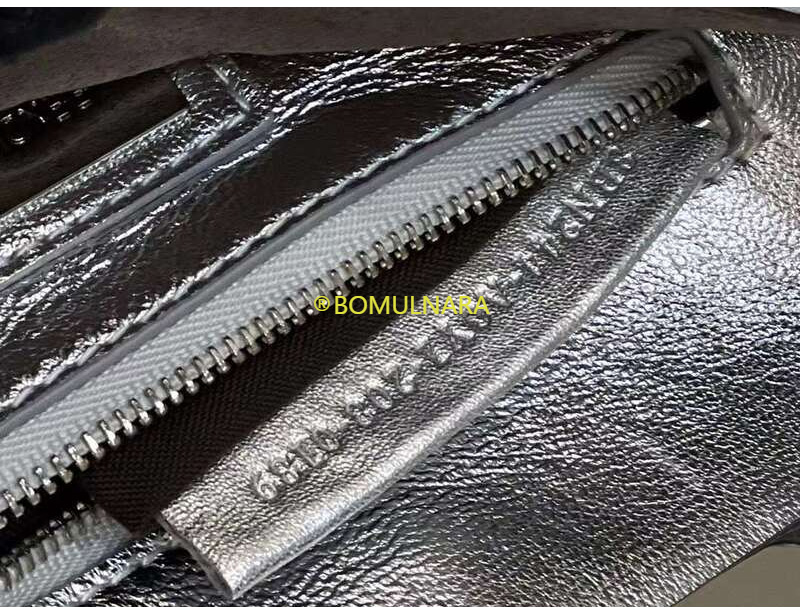 메탈릭 실버 나파 가죽 트리밍