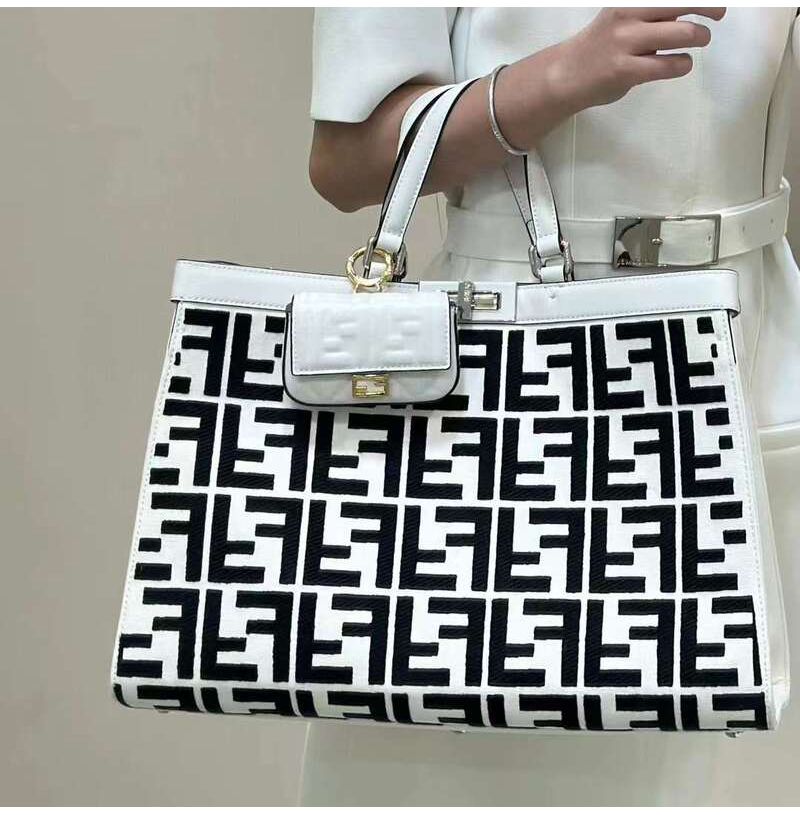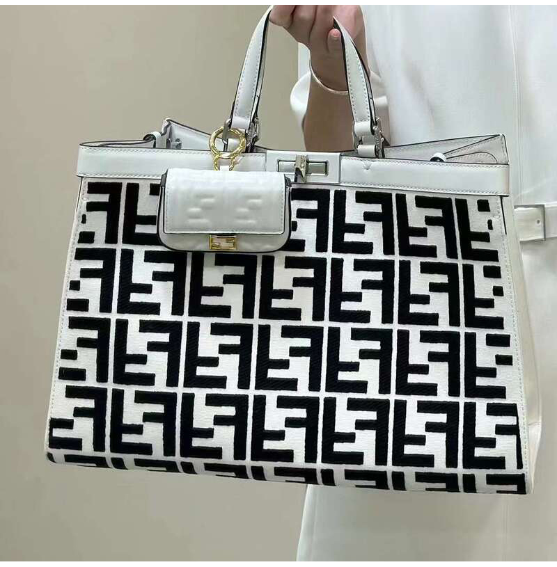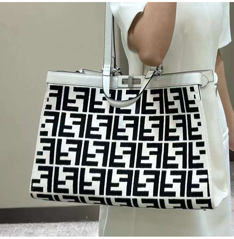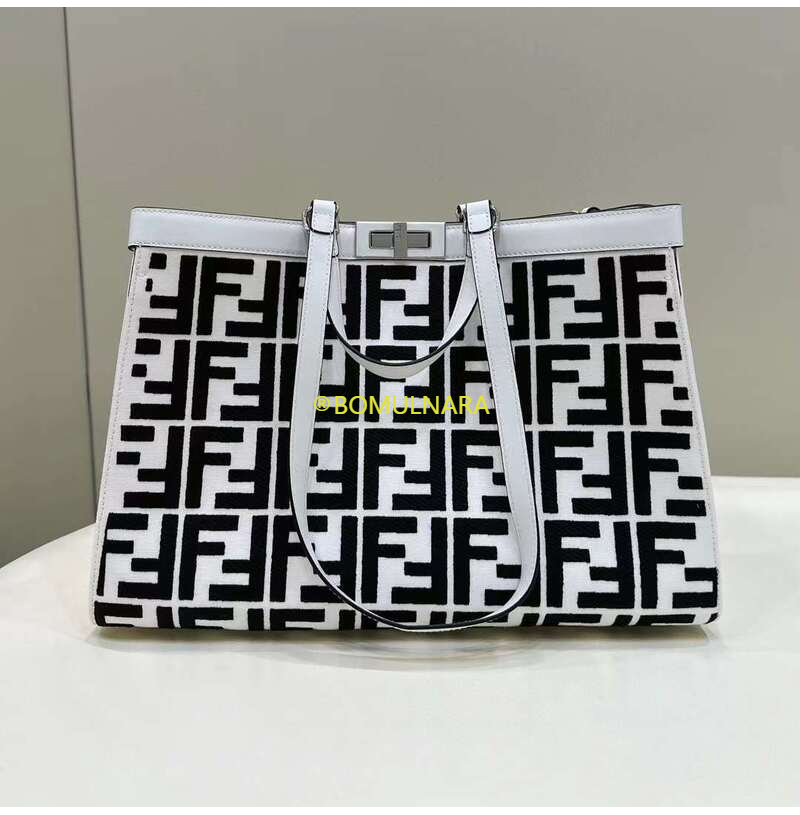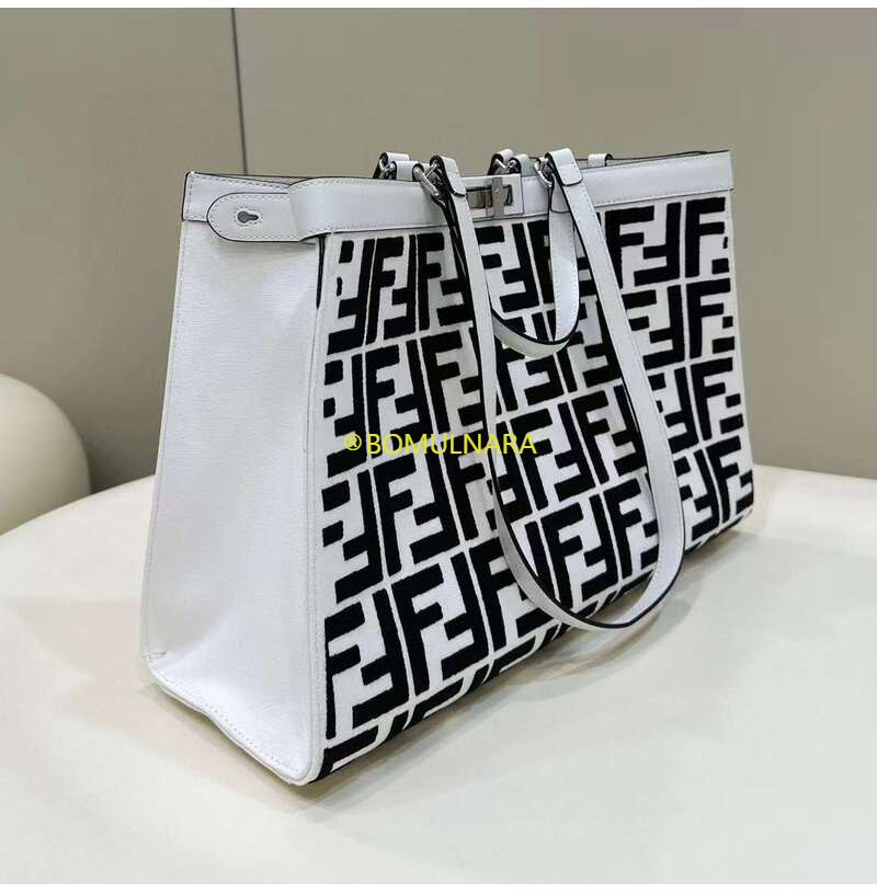 [스페셜오더]FENDI-8BH374 펜디 화이트/블랙 FF 캔버스 피카부 X 미디엄 토트백