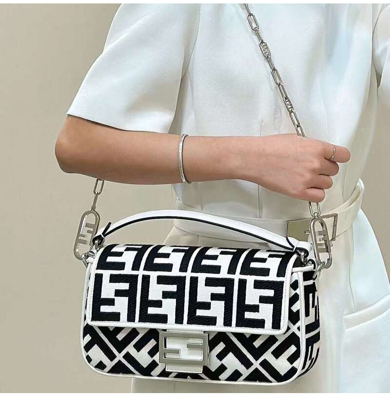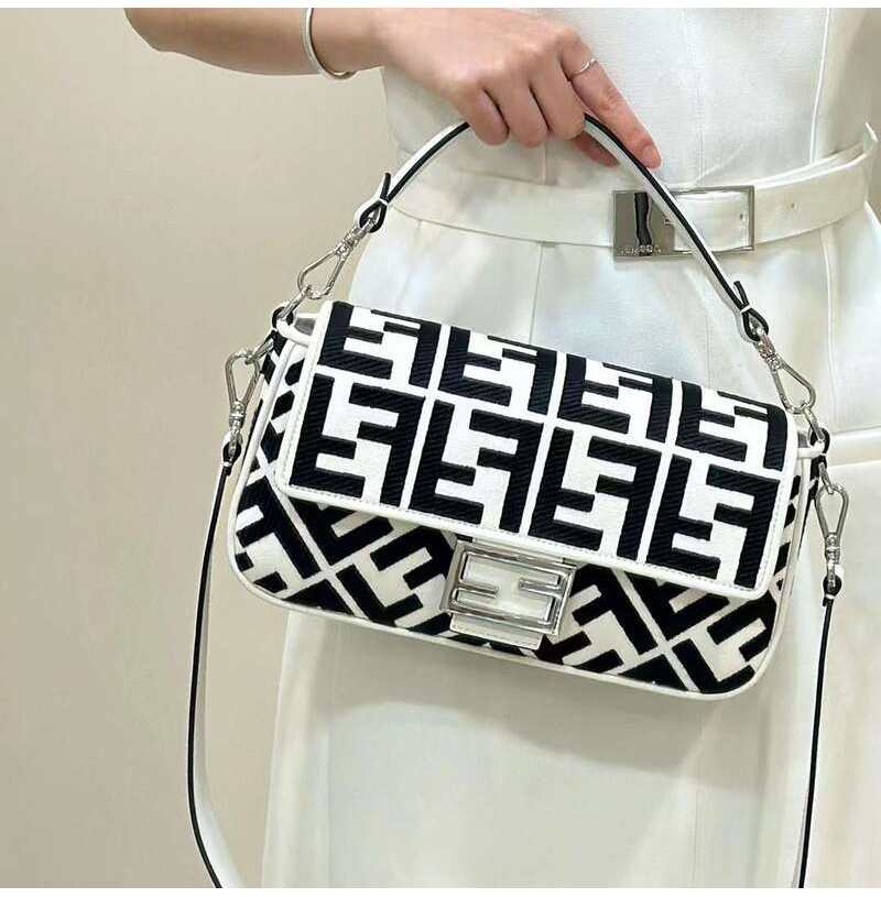 [스페셜오더]FENDI-8BR600 펜디 화이트/블랙 FF 캔버스 미디엄 바게트 백 27CM