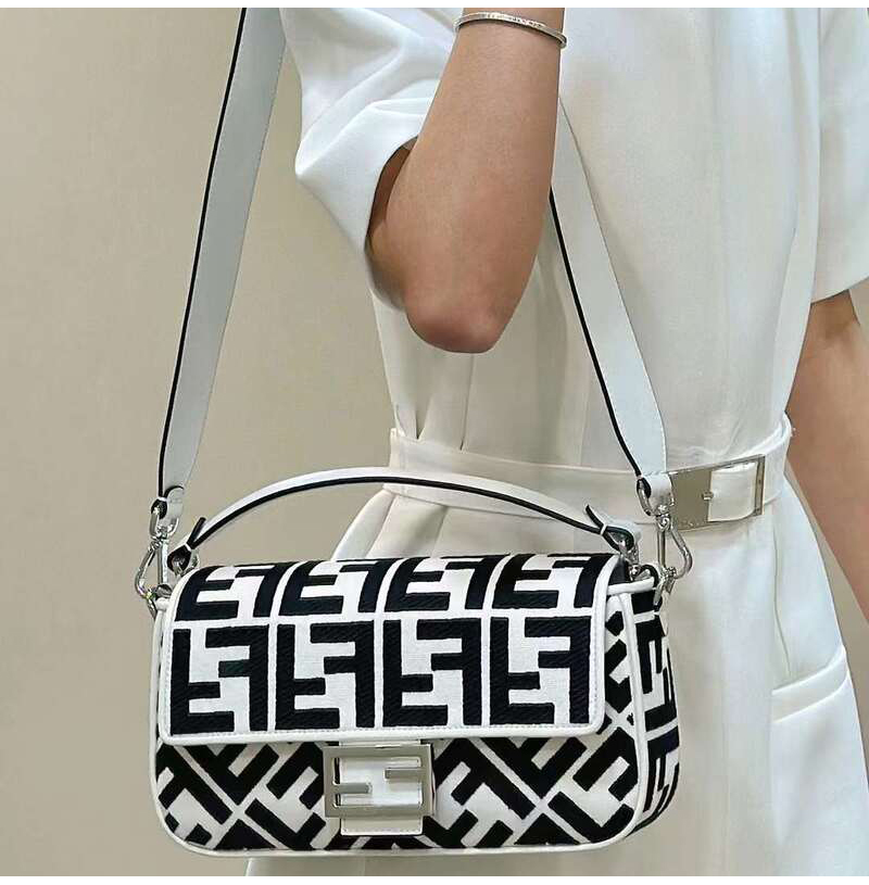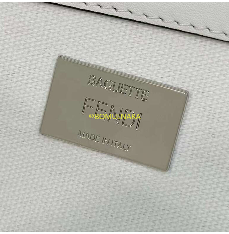 [스페셜오더]FENDI-8BR600 펜디 화이트 FF 캔버스 레이저컷 레터링 스트랩 바게트 백 27CM