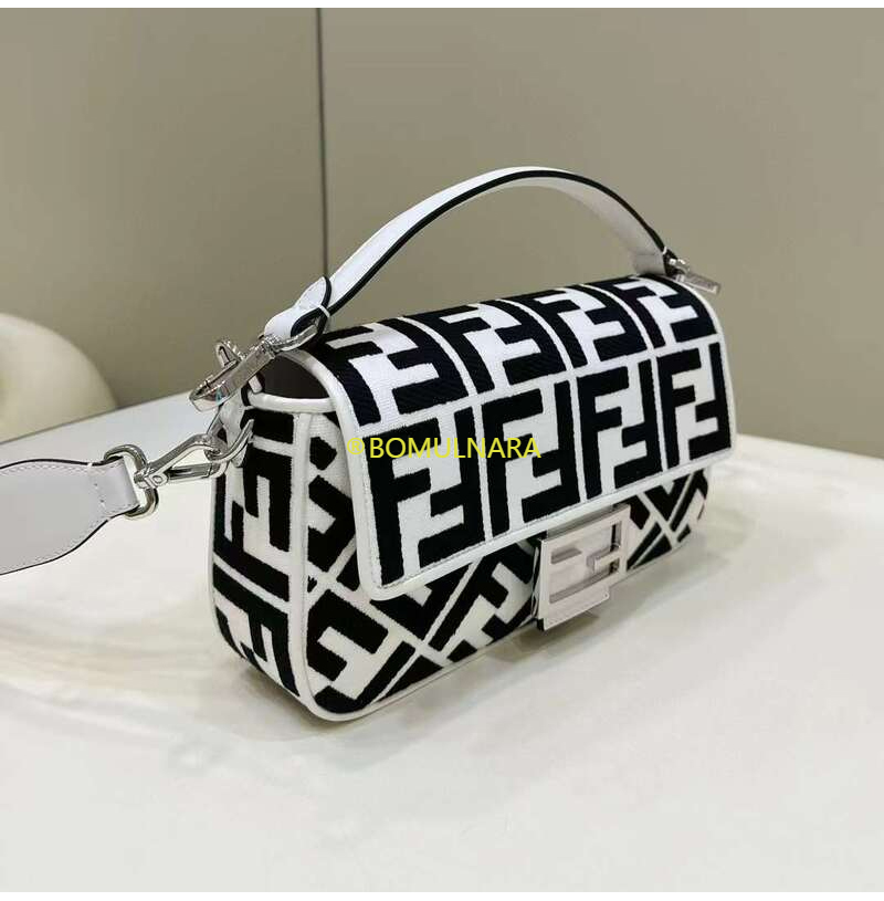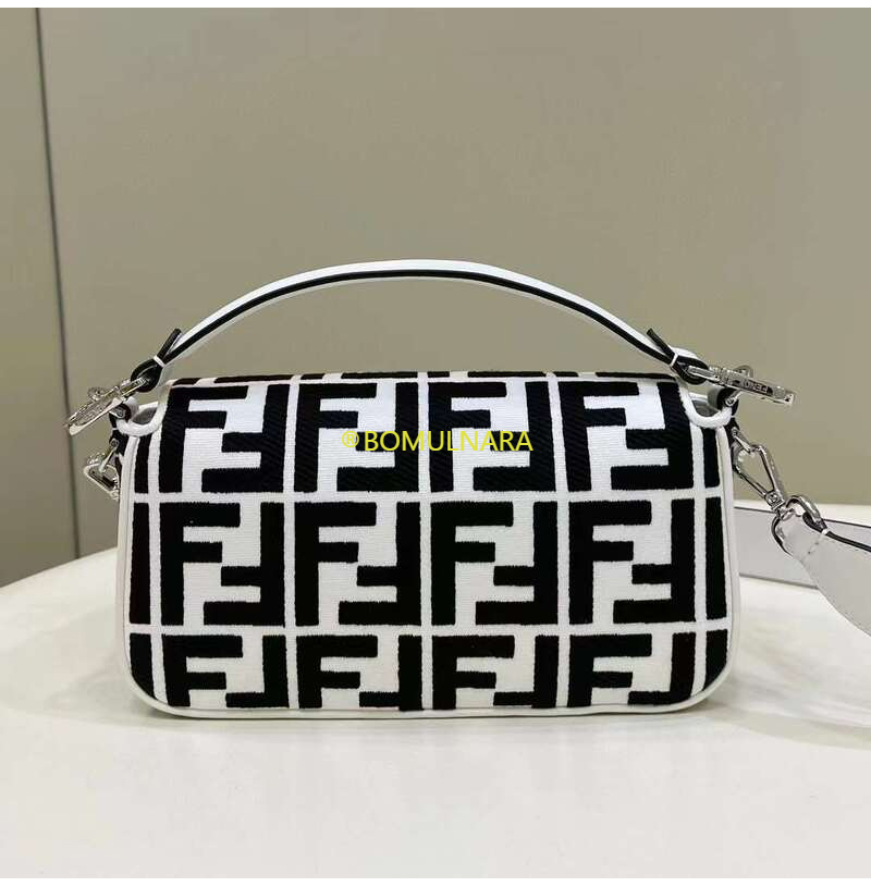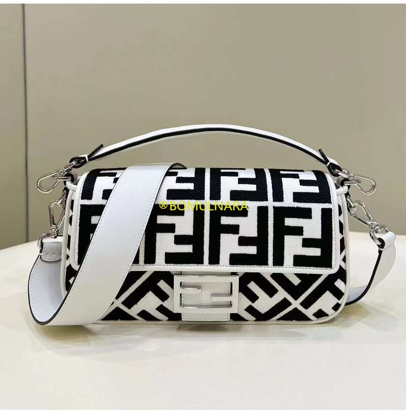 [스페셜오더]FENDI-8BR600 펜디 화이트 FF 모티프 양가죽 미디엄 바게트백