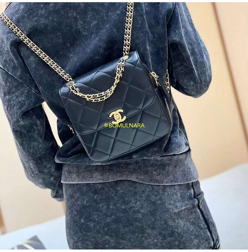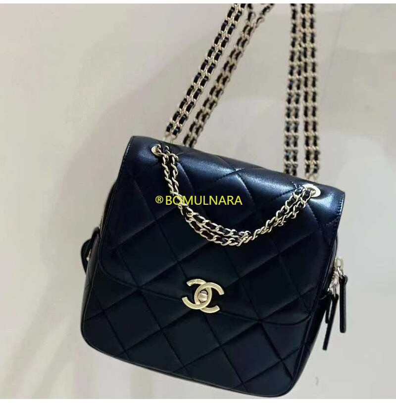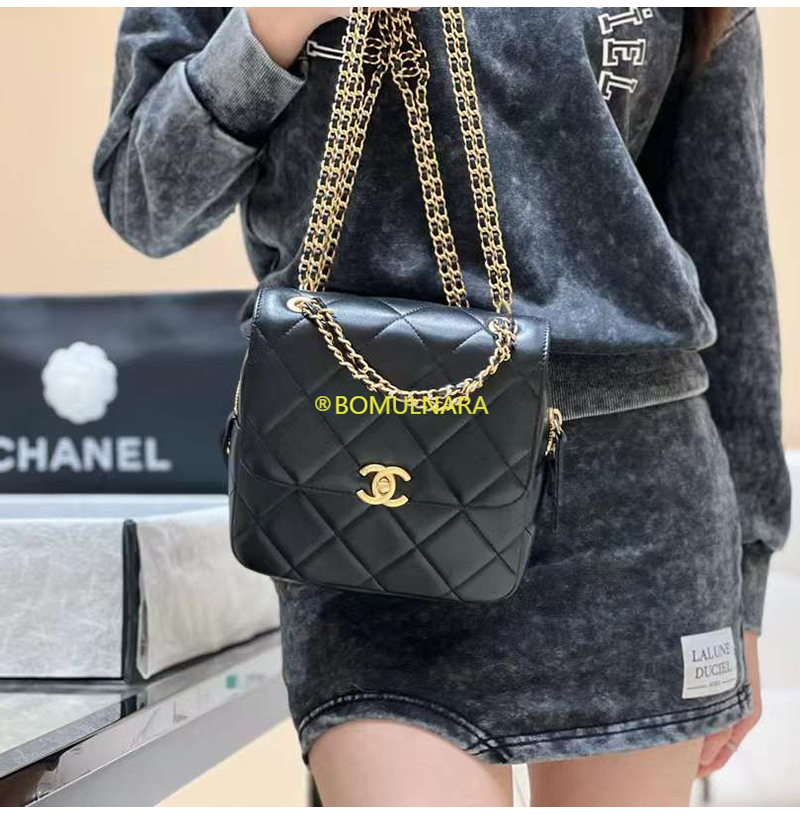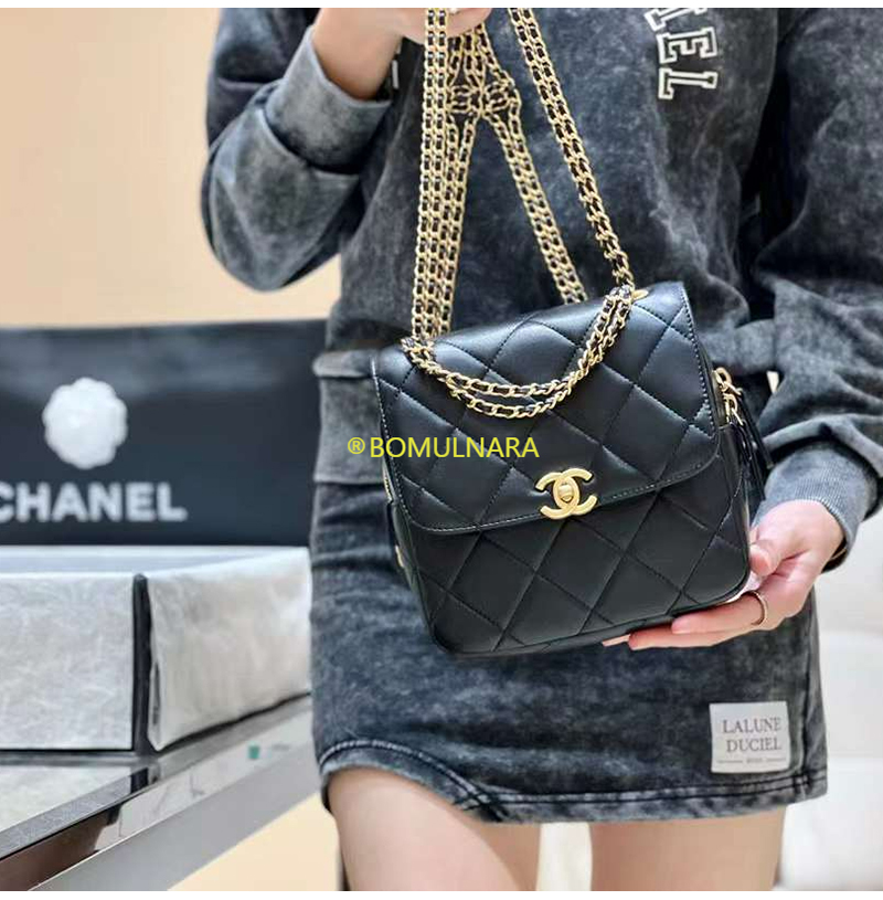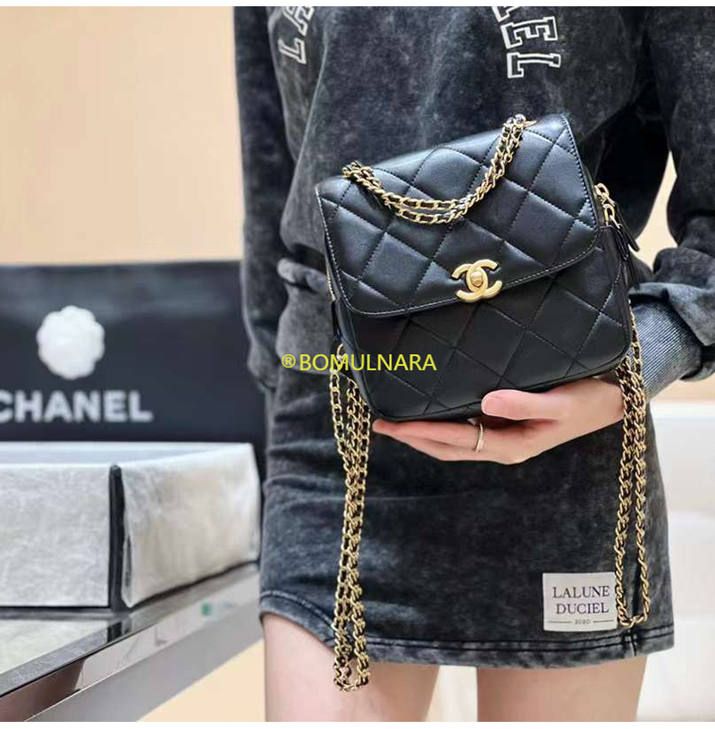 [스페셜오더]CHANEL-AS3884 샤넬 22S 블랙 램스킨 골드 더블 체인 백팩