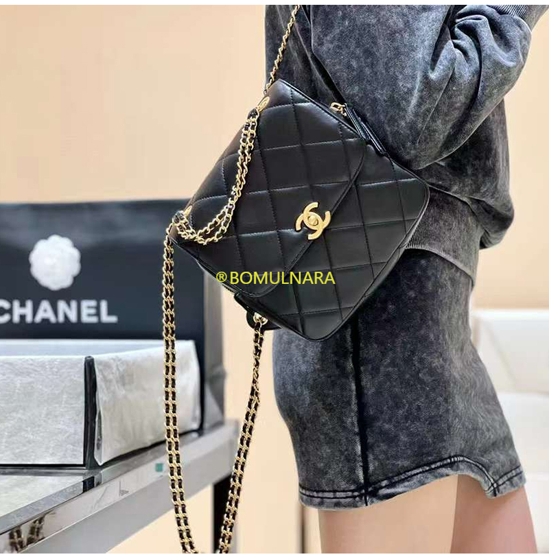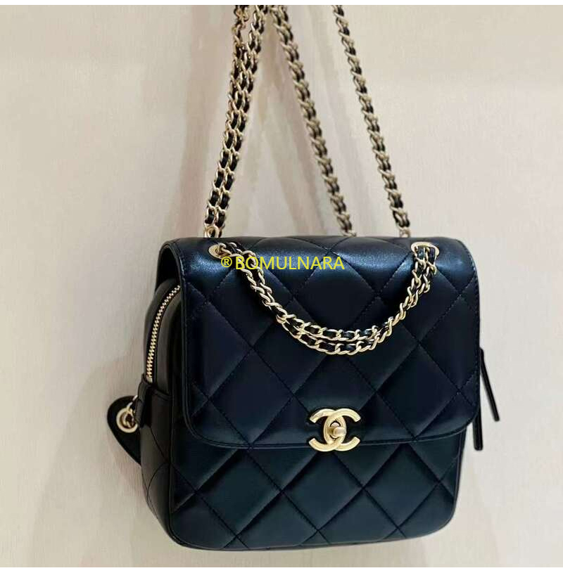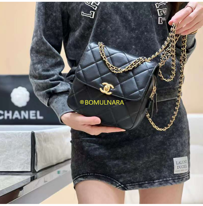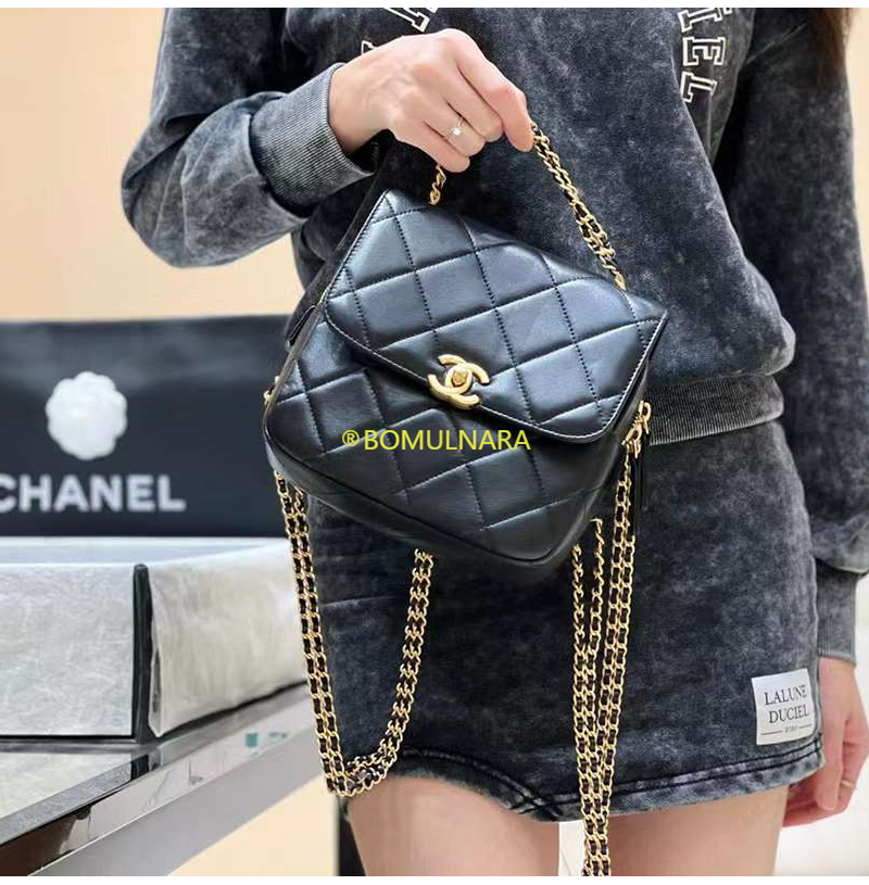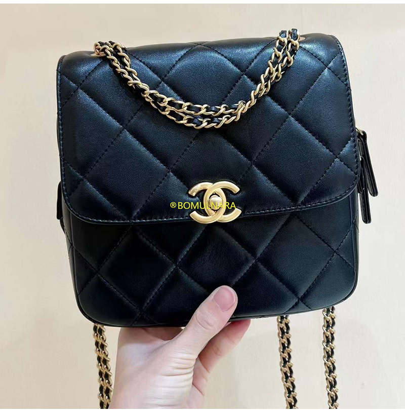 [스페셜오더]CHANEL-AS3884 샤넬 22S 블랙 램스킨 골드 더블 체인 백팩