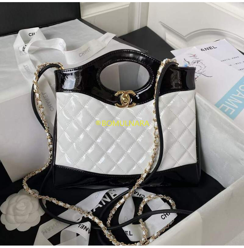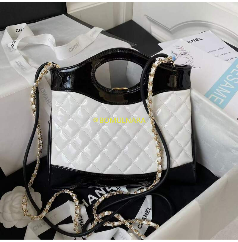 [스페셜오더]CHANEL-AS4133 샤넬 22S 화이트/블랙 페이턴트 골드 31 미니 쇼핑백