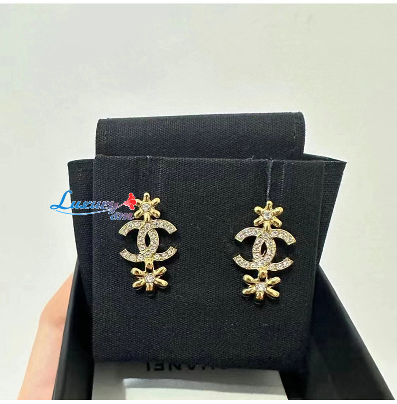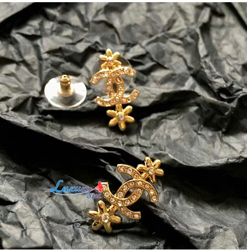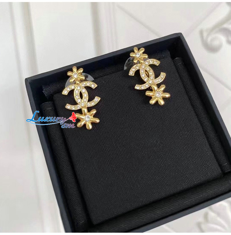 CHANEL-ABB349 샤넬 골드 크리스탈 장식 CC 로고 귀걸이