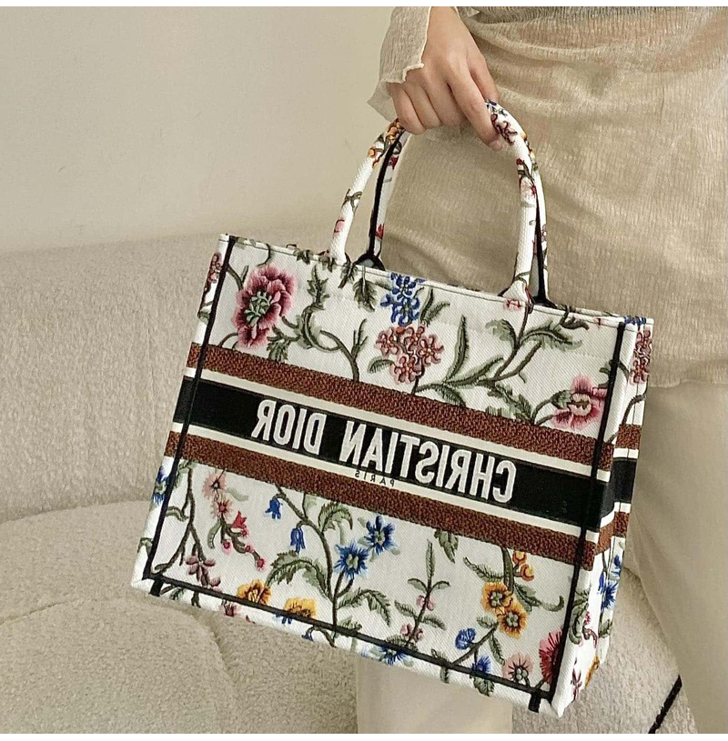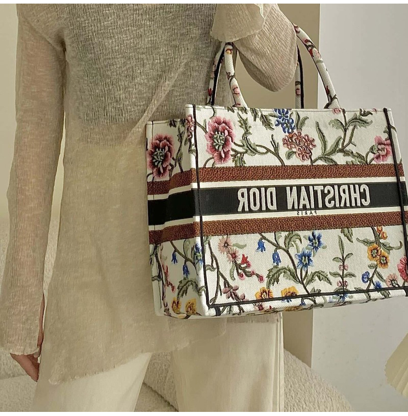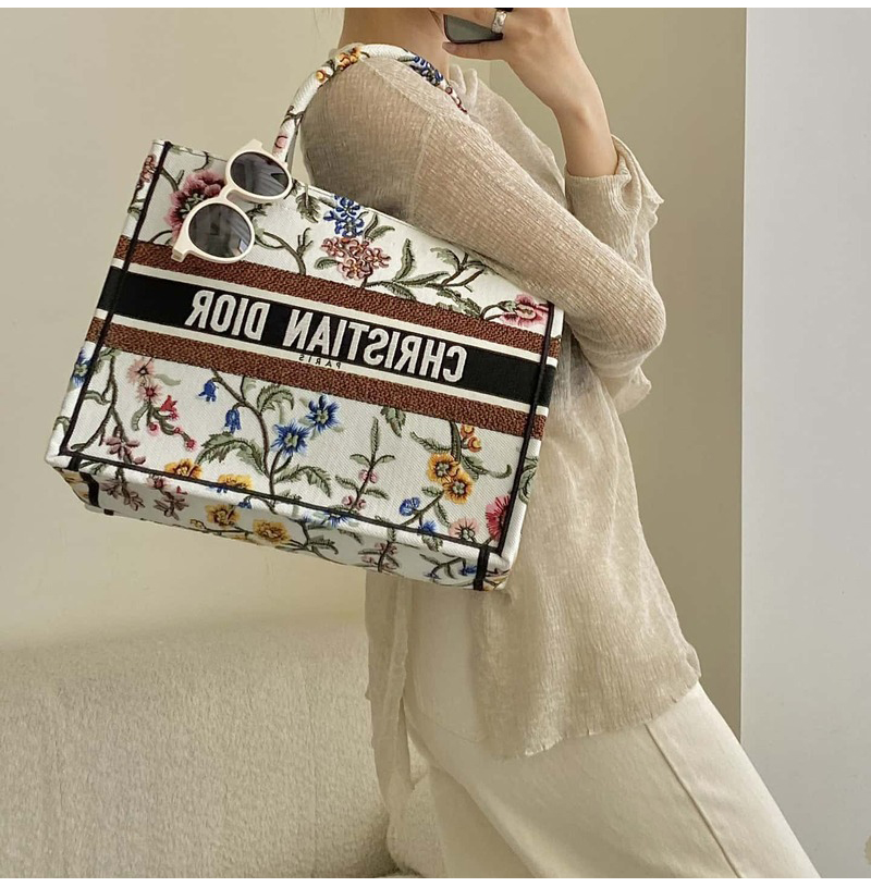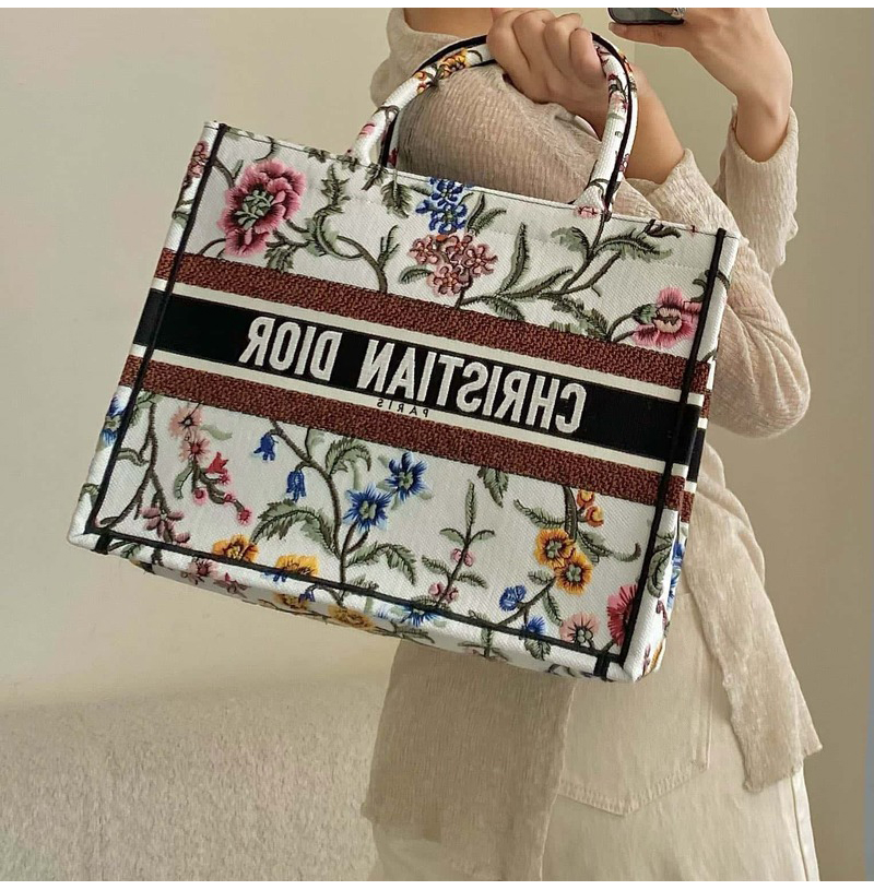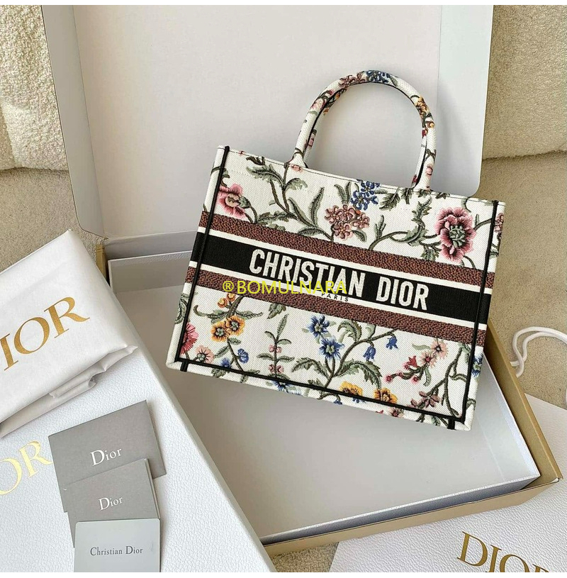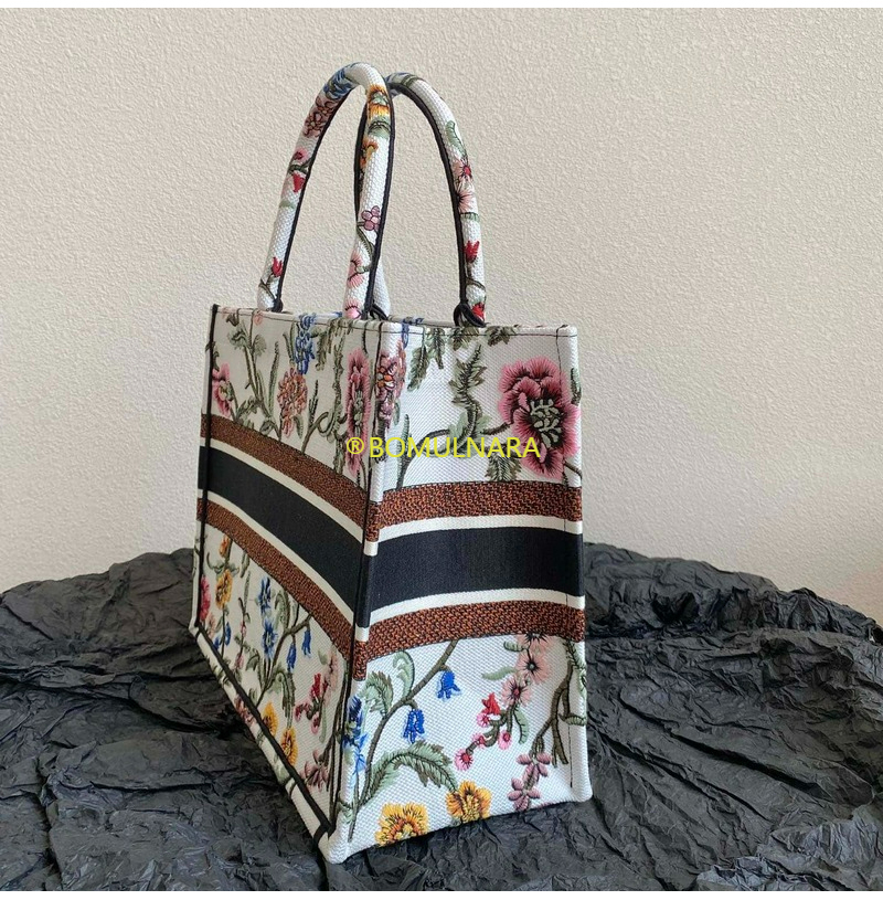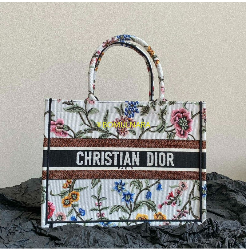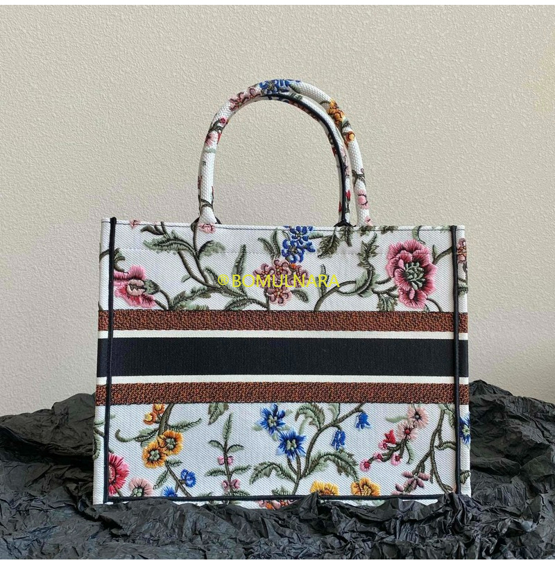 [스페셜오더]DIOR-M1296 디올 화이트 멀티 컬러 Dior Petites Fleurs 자수 BOOK TOTE 미디엄 백 36CM