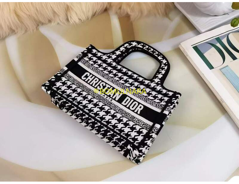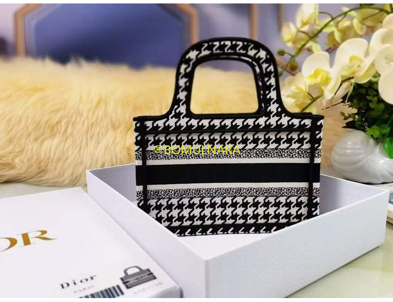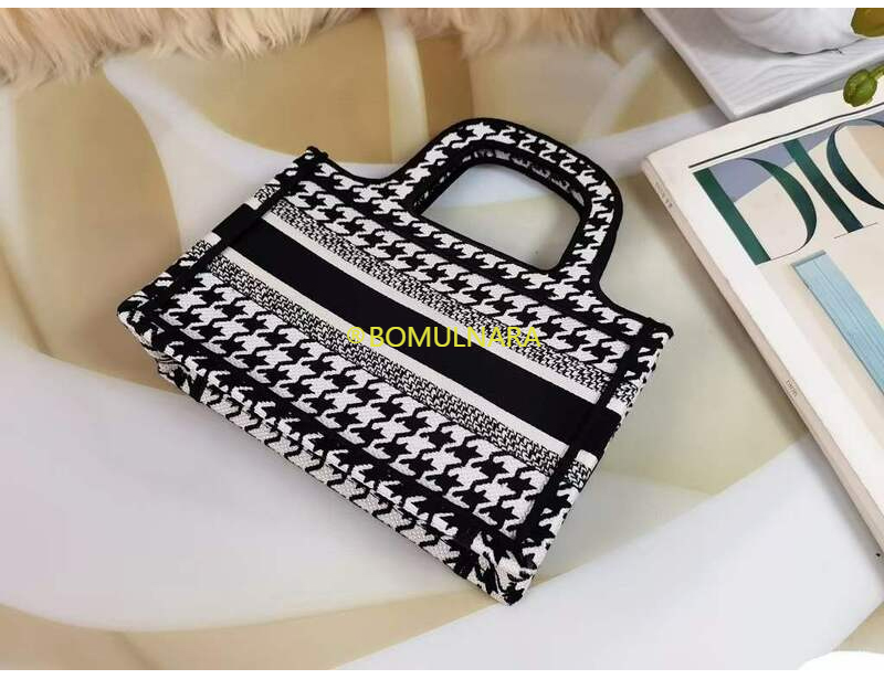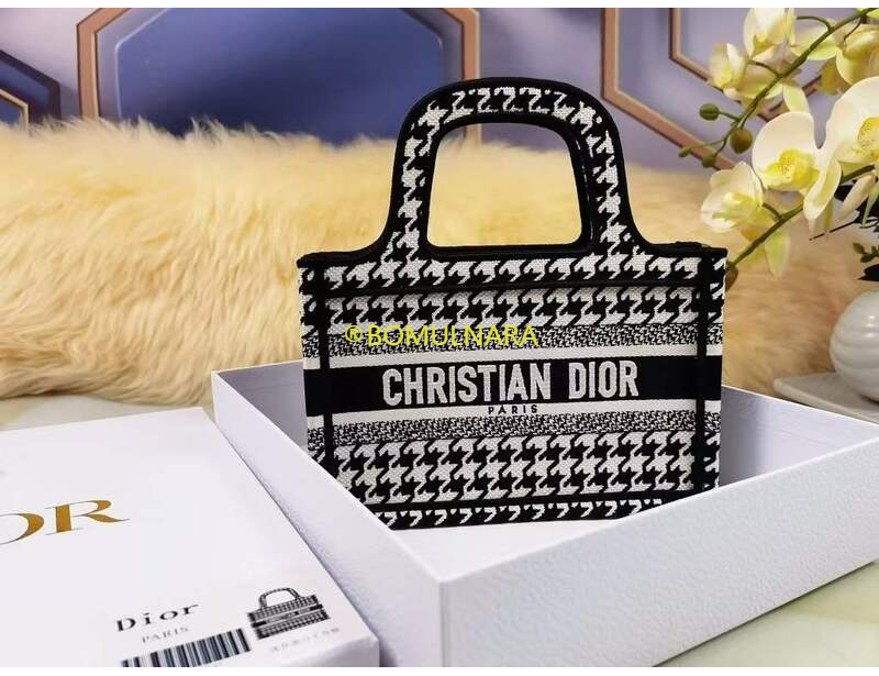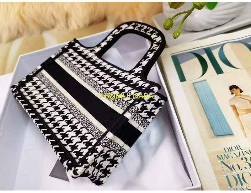 [스페셜오더]DIOR-S5475 디올 블랙 & 화이트 마이크로 하운즈투스 자수 미니 BOOK TOTE 백 22.5CM