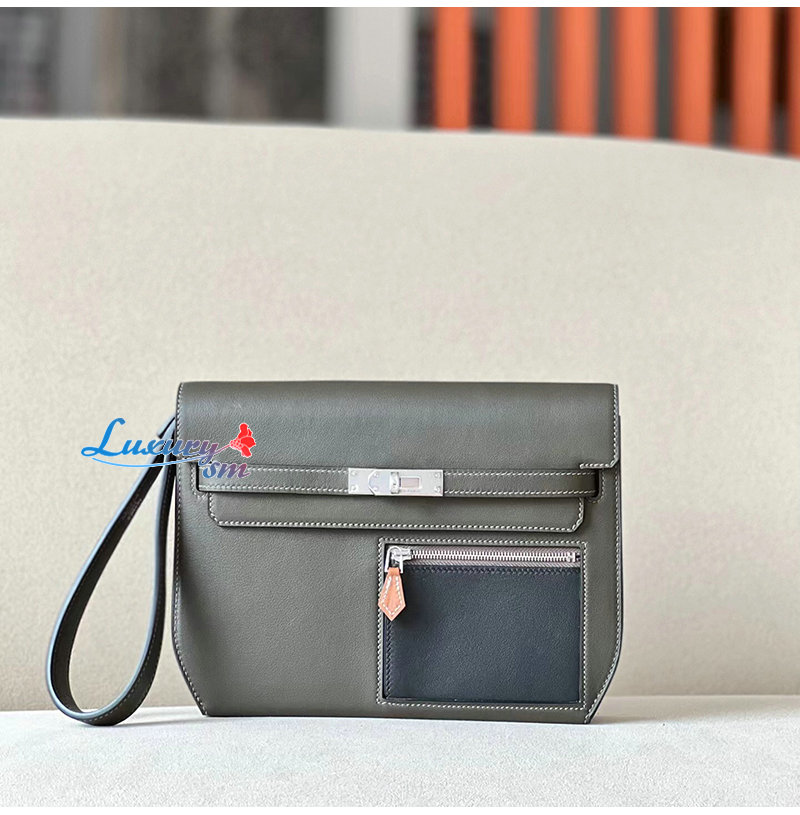 [스페셜오더]HERMES-KP25 에르메스 카키 Swift 가죽 Kelly Depeches 25 파우치