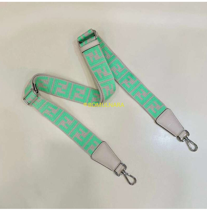 FENDI-8AV386 펜디 베이지/그린 FF 모티프 리본 숄더 스트랩 미니 스트랩 유