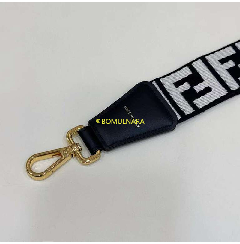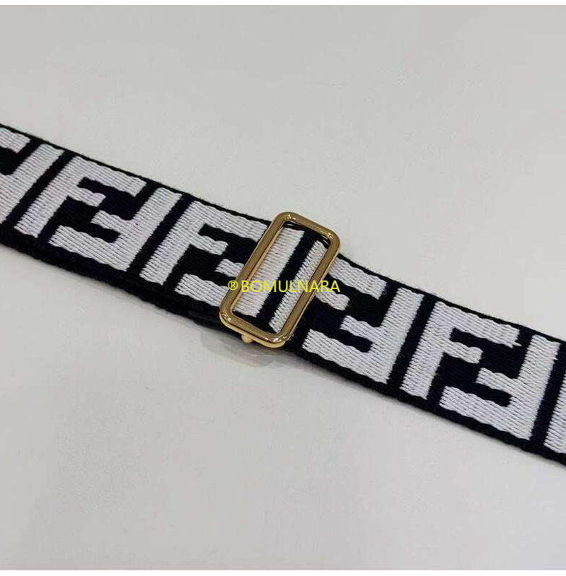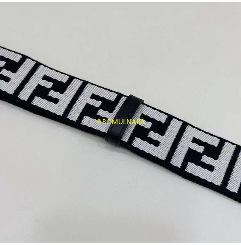 FENDI-8AV386 펜디 블랙/베이지 FF 모티프 리본 숄더 스트랩 미니 스트랩 유