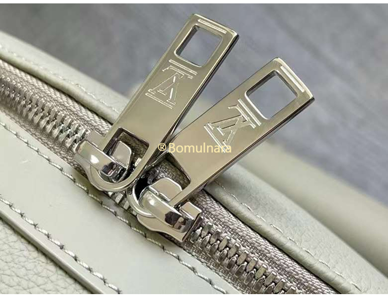앞면 플랩 포켓 장식하는 톤온톤 LV 이니셜 디테일