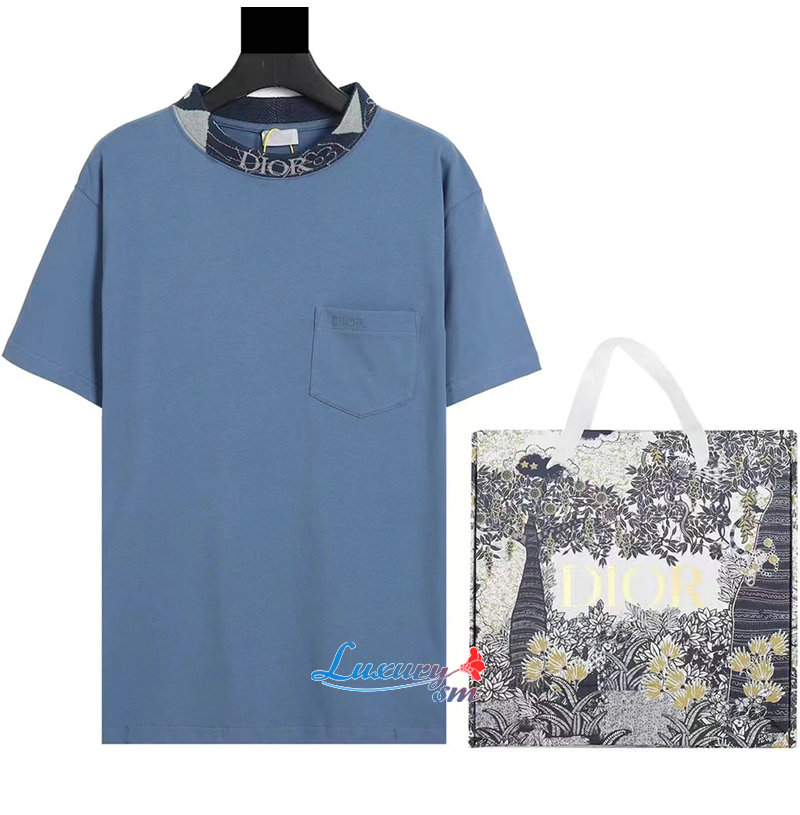 DIOR-07216 디올 블루 코튼 티셔츠 남여공용