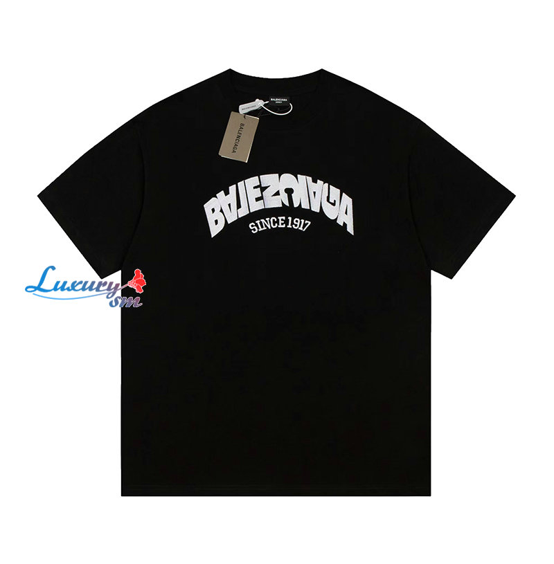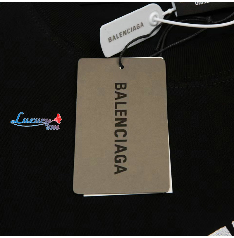 BALENCIAGA-07254 발렌시아가 블랙 프린트 장식 티셔츠 남여공용