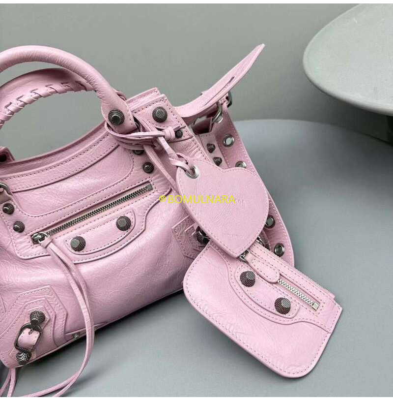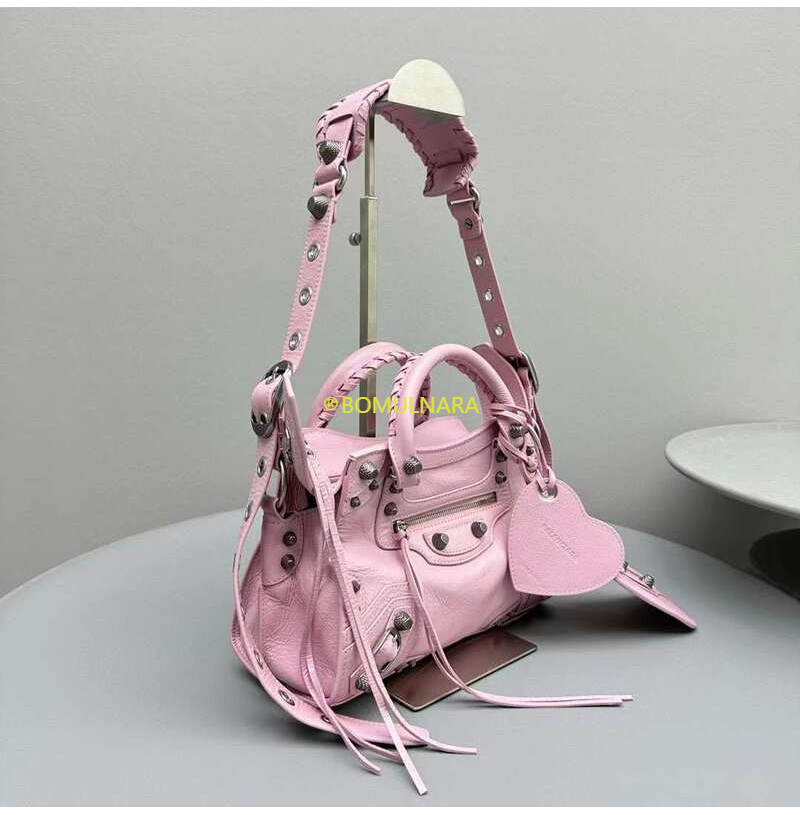 [스페셜오더]BALENCIAGA-700940 발렌시아가 핑크 빈티지 실버 장식 NEO CAGOLE XS 핸드백