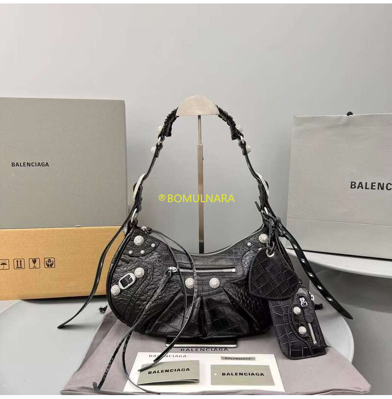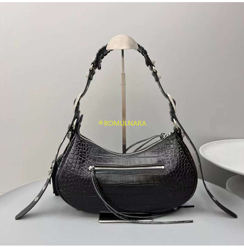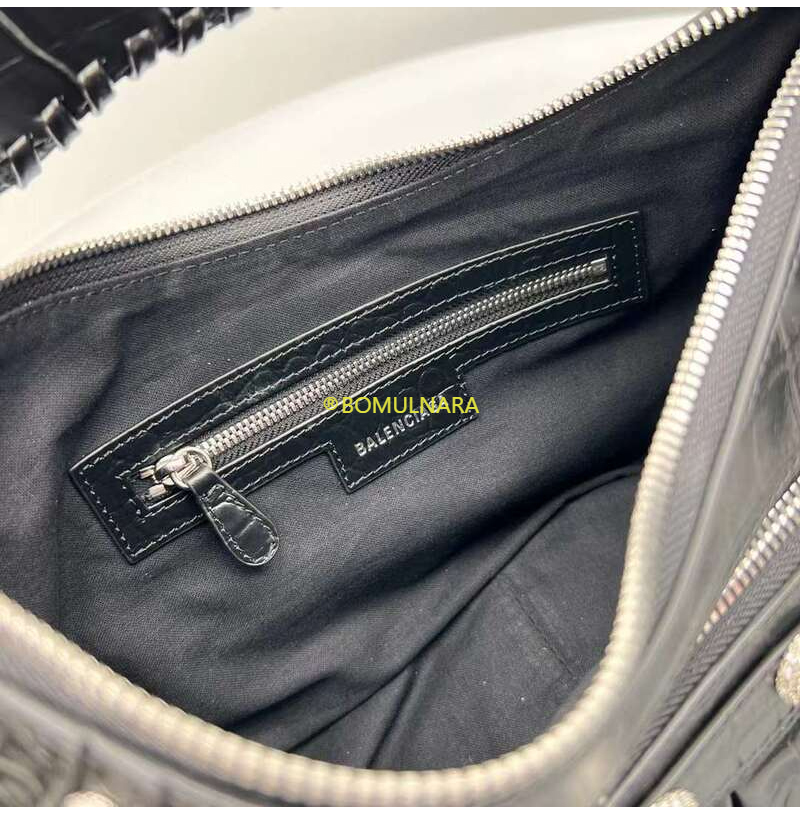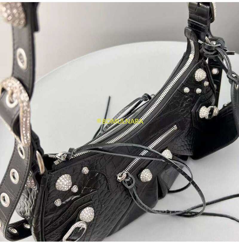 [스페셜오더]BALENCIAGA-671307 발렌시아가 블랙 크로커다일 엠보싱 라인스톤 LE CAGOLE 스몰 숄더백