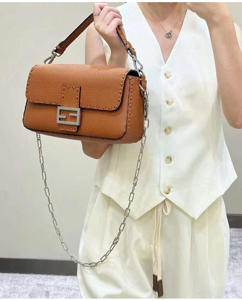 [스페셜오더]FENDI-FENDI-8BR600 펜디 브라운 오버사이즈 탑스티치 셀러리아 미디엄 바게트 백 27CM 가격 : 360,000원