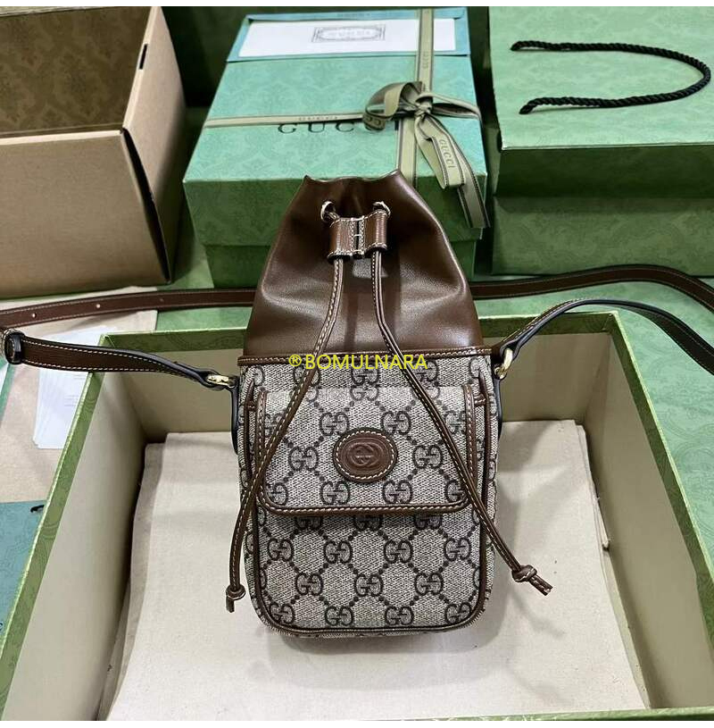 [스페셜오더]GUCCI-746303 9745 구찌 베이지/에보니 인터로킹 G GG 미니 버킷백