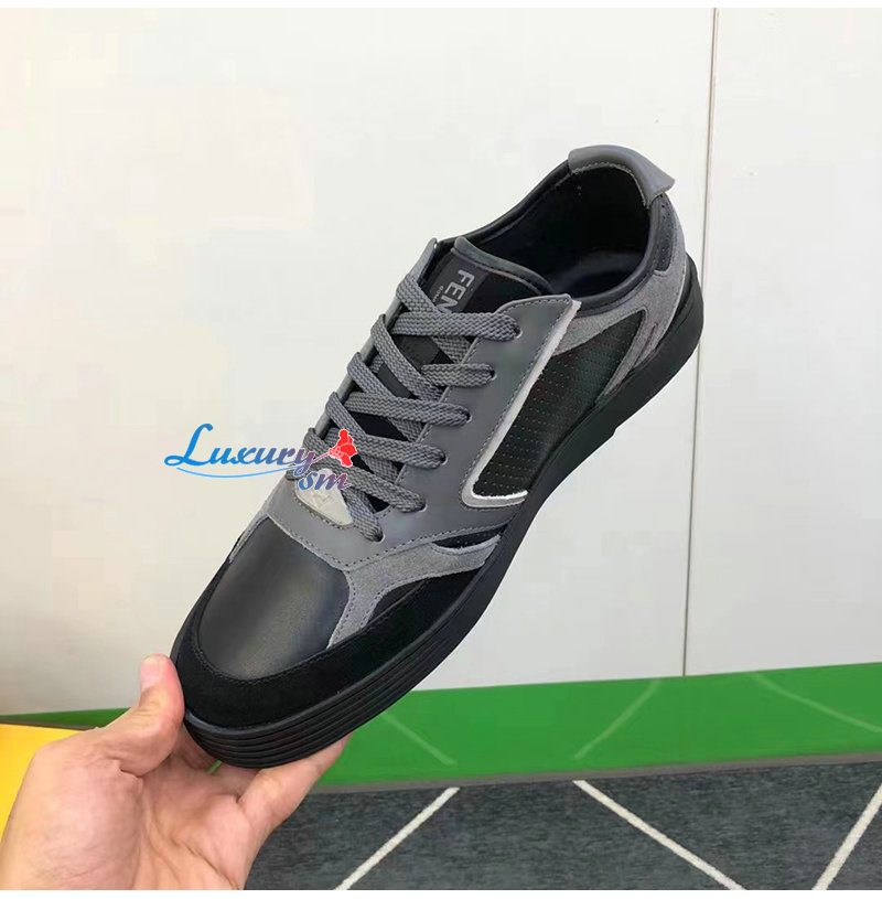 FENDI-7E1631 펜디 그레이 가죽 펜디 스텝 로우탑 스니커즈 남성용