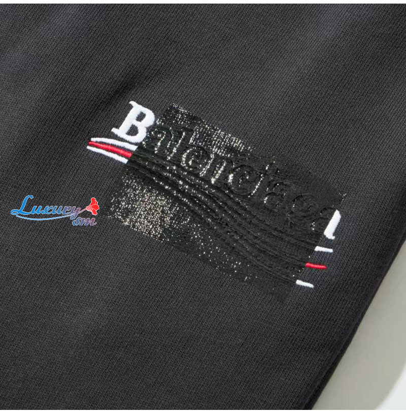 BALENCIAGA-080310 발렌시아가 다크 그레이 아플리케 장식 후드 티셔츠 남성용