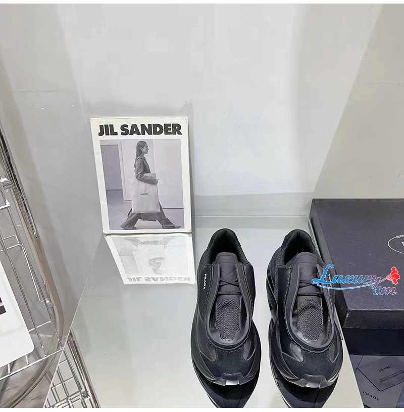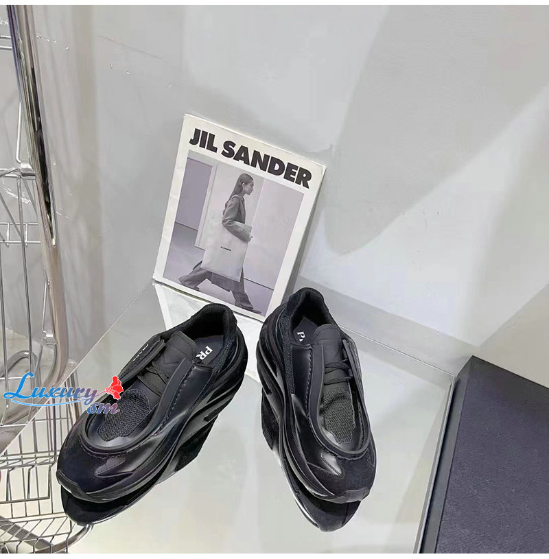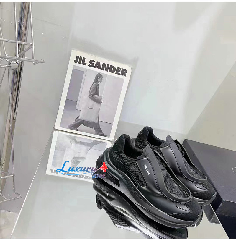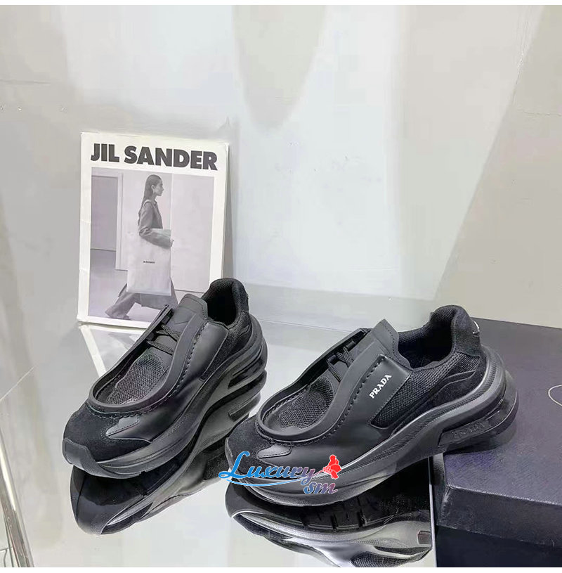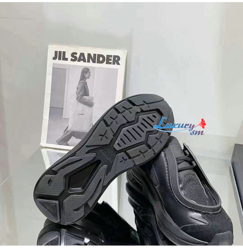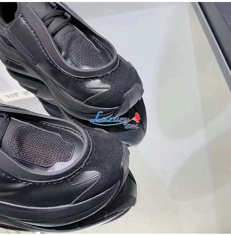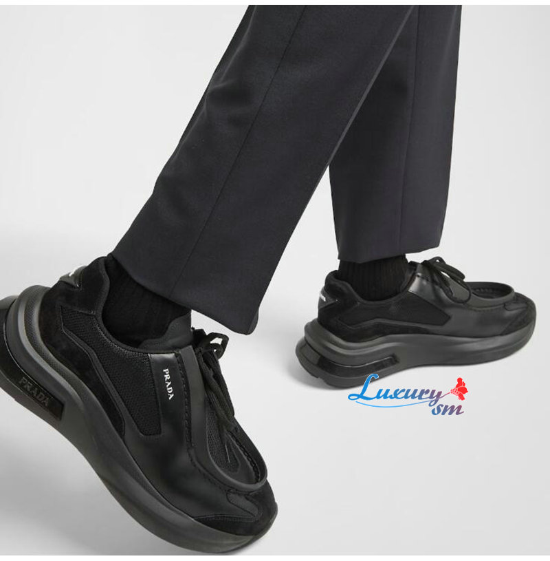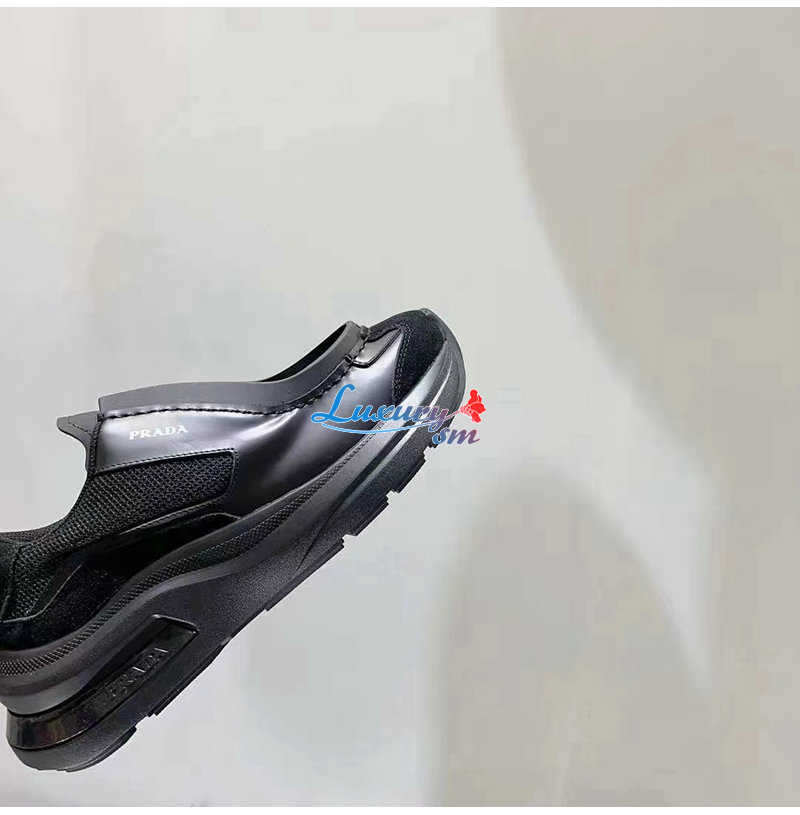 PRADA-2EG424 프라다 블랙 브러시드 가죽 스니커즈 남성용