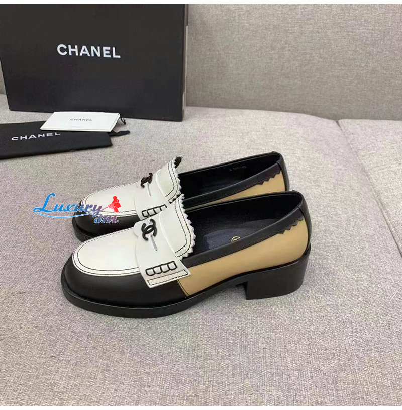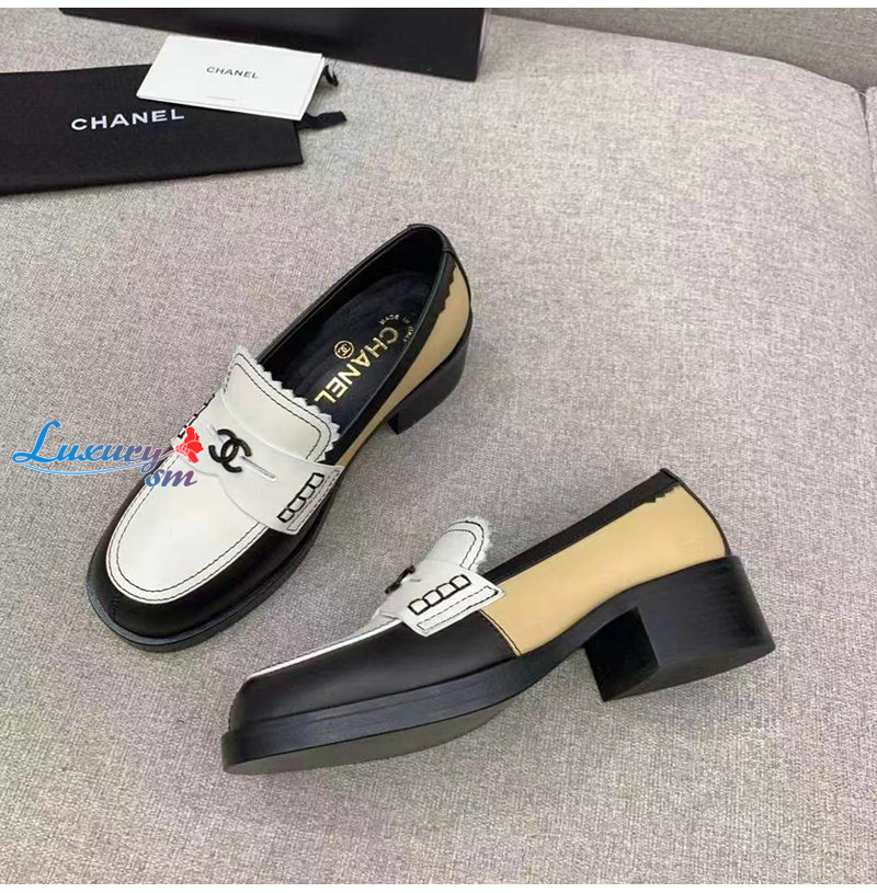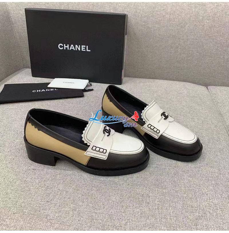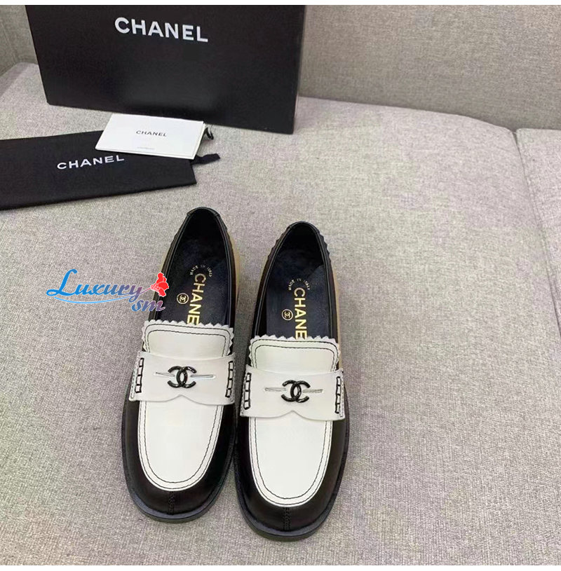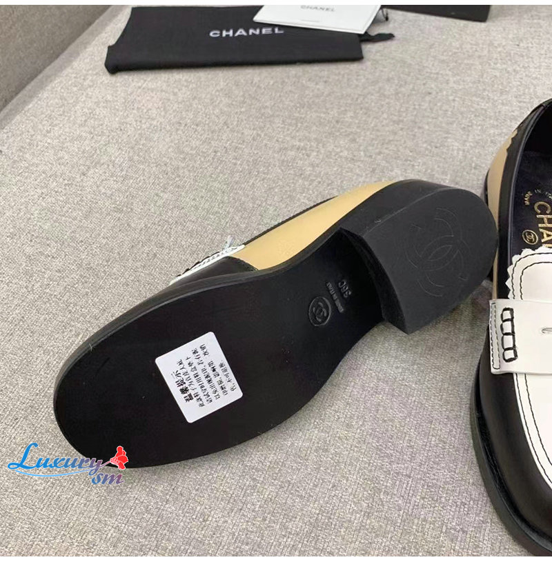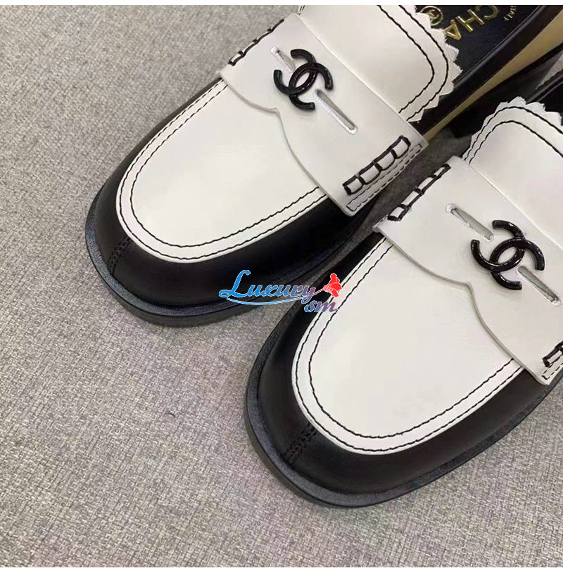 CHANEL-G45180 샤넬 블랙/화이트 카프스킨 로퍼 여성용