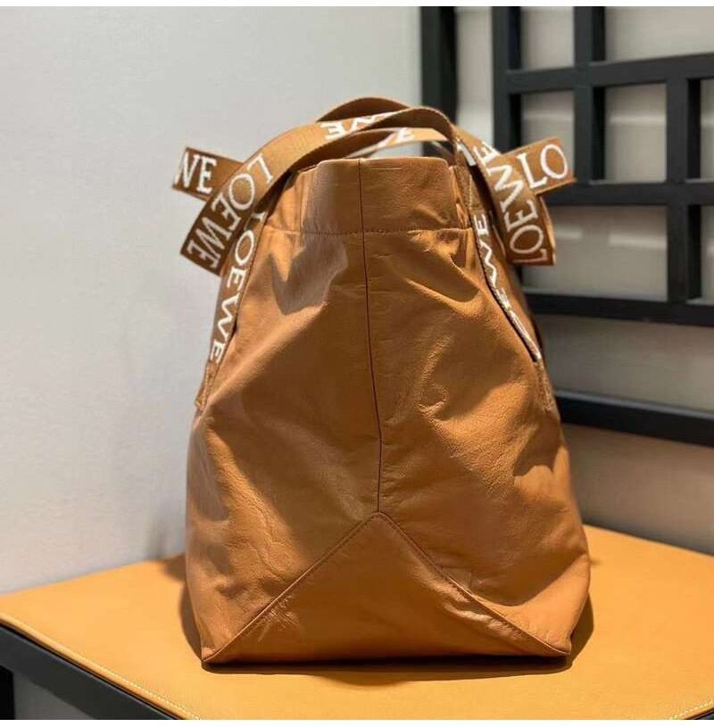 [스페셜오더]LOEWE-B507X 로에베 브라운 페이퍼 카프스킨 폴드 쇼퍼 백 50CM