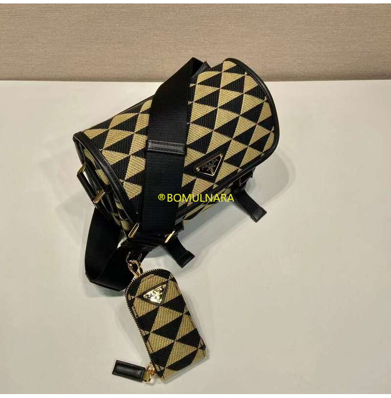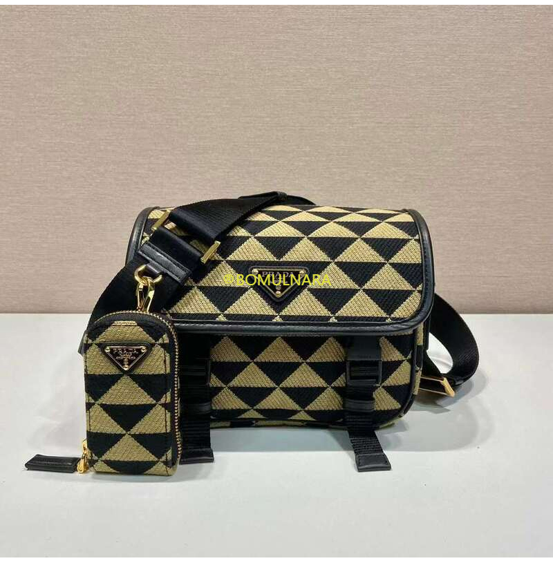 [스페셜오더]PRADA-2VD034 프라다 블랙/베이지 심볼 자수 패브릭 백 22CM