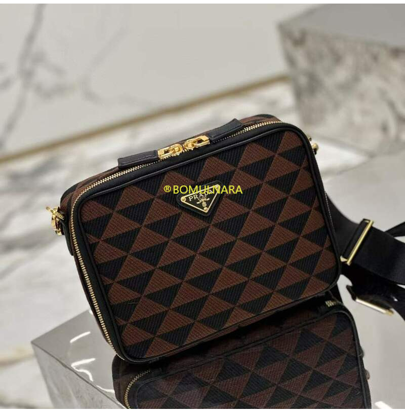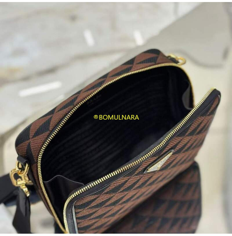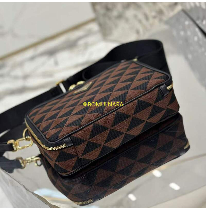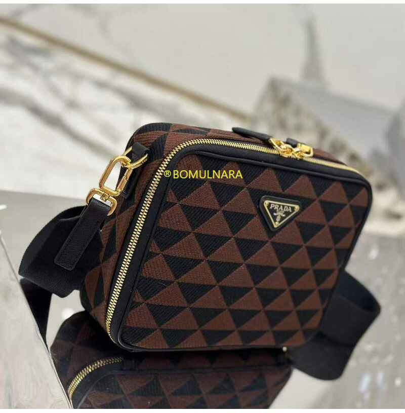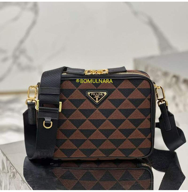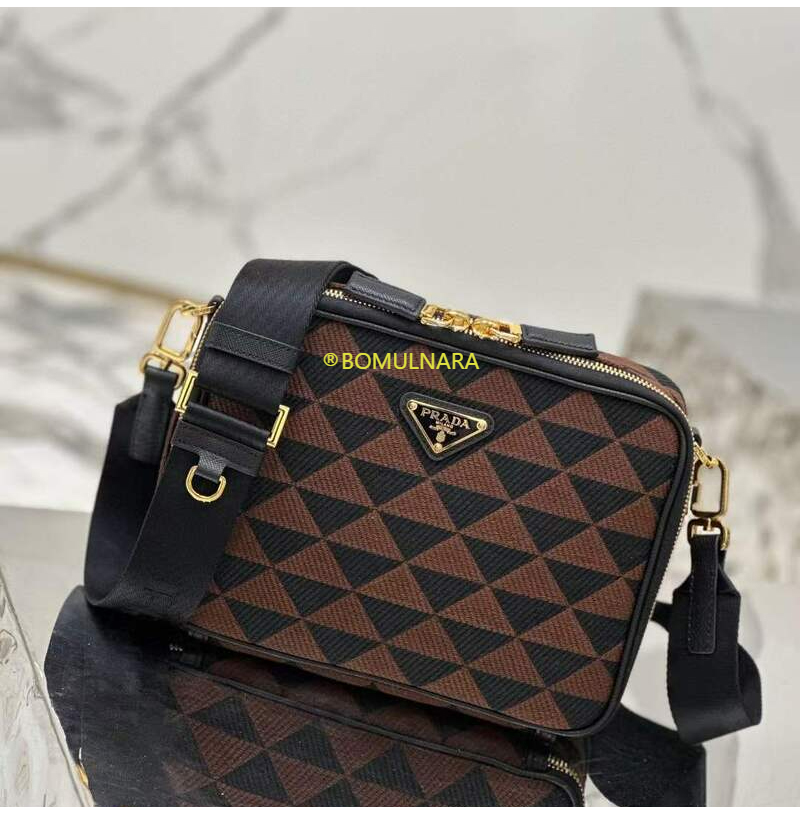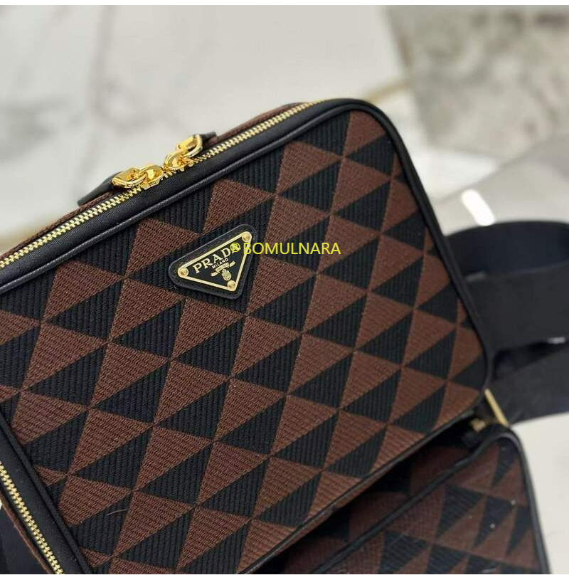 [스페셜오더]PRADA-2VH069 프라다 블랙/베이지 브리크 자수 패브릭 백 22CM