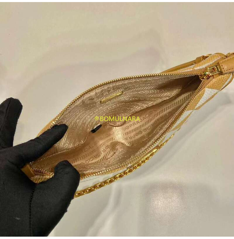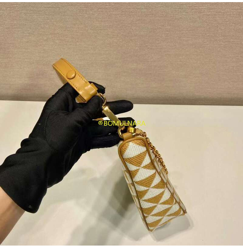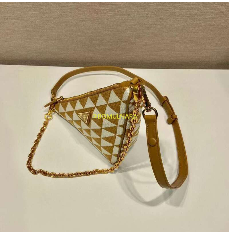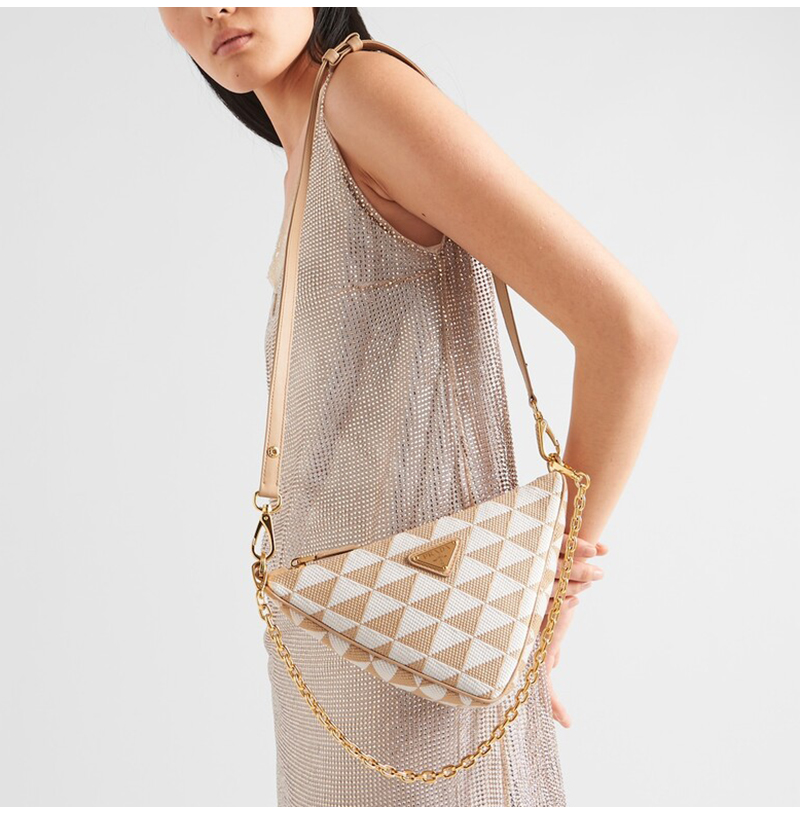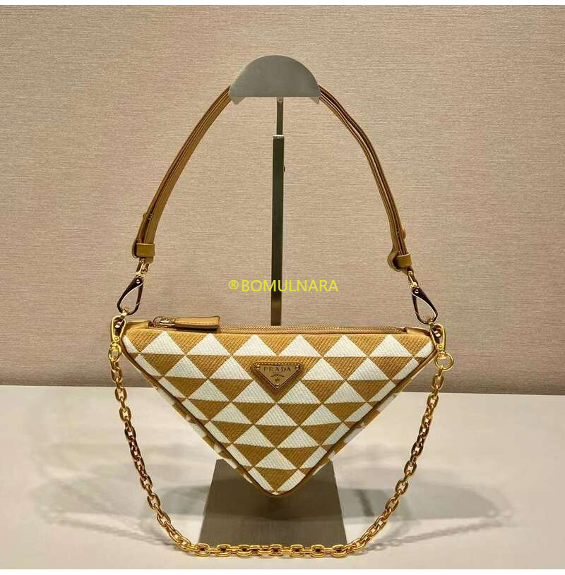 [스페셜오더]PRADA-1BC543 프라다 베이지/초크 화이트 트라이앵글 로고 심볼 자수 패브릭 미니 백