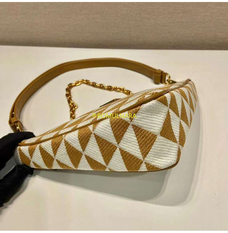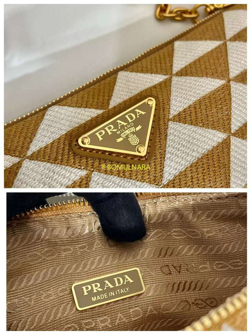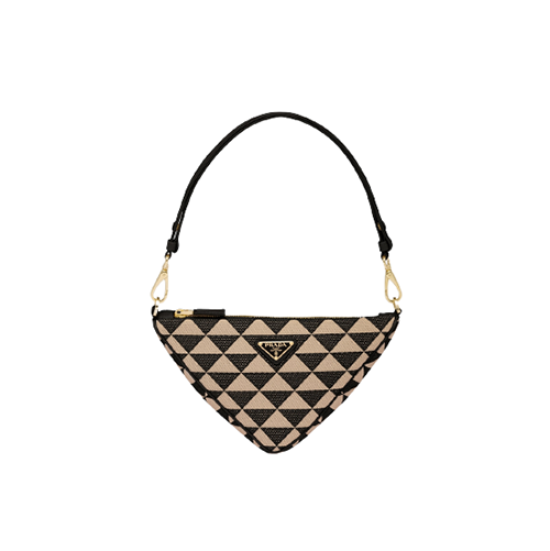 [스페셜오더]PRADA-1BC543 프라다 블랙/베이지 트라이앵글 로고 심볼 자수 패브릭 미니 백