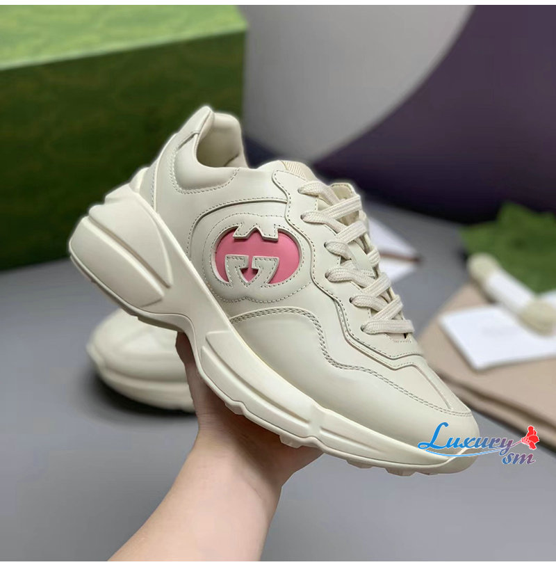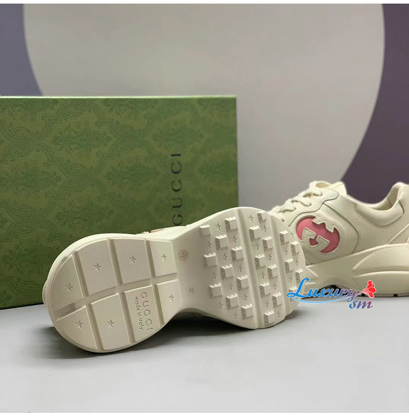 [스페셜오더]GUCCI-757887 9564 구찌 롸이톤 아이보리/핑크 가죽 스니커즈 여성용